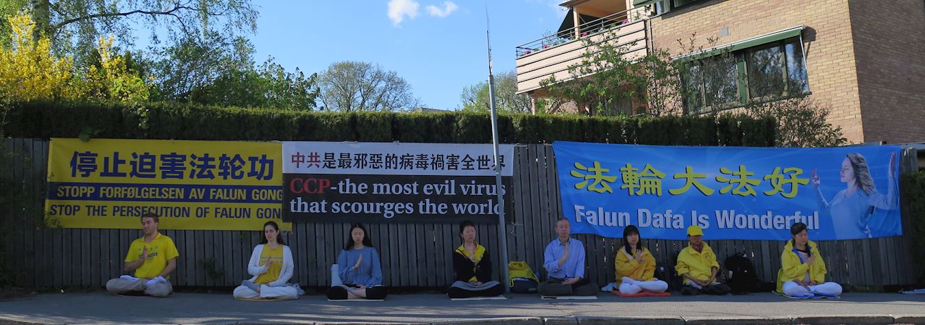 五月十三日的活动结束之前,法轮功学员到中使馆要求中共停止迫害法轮功。