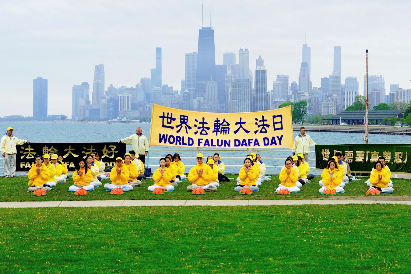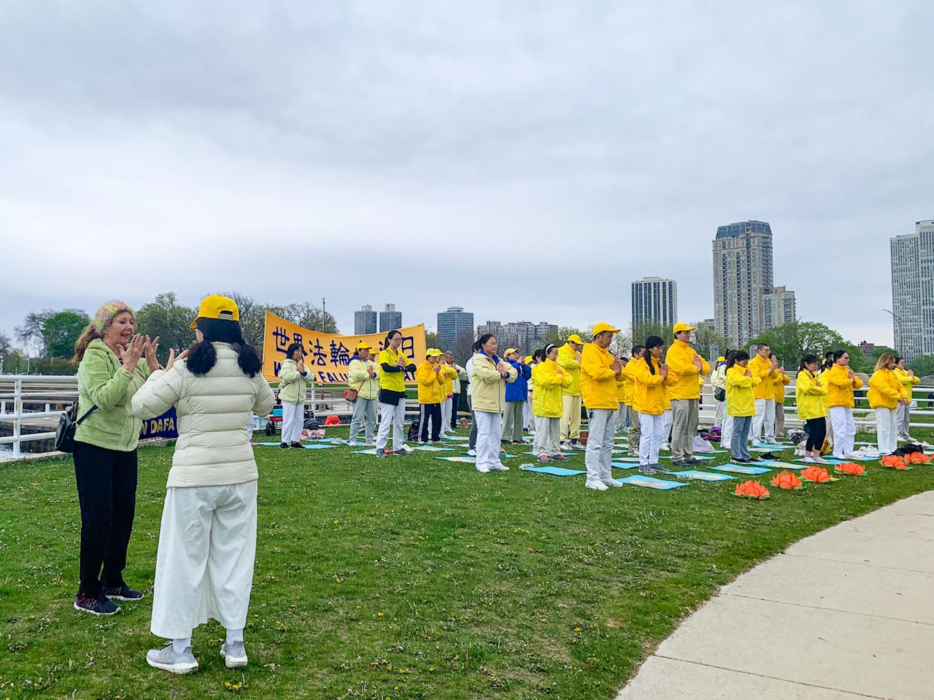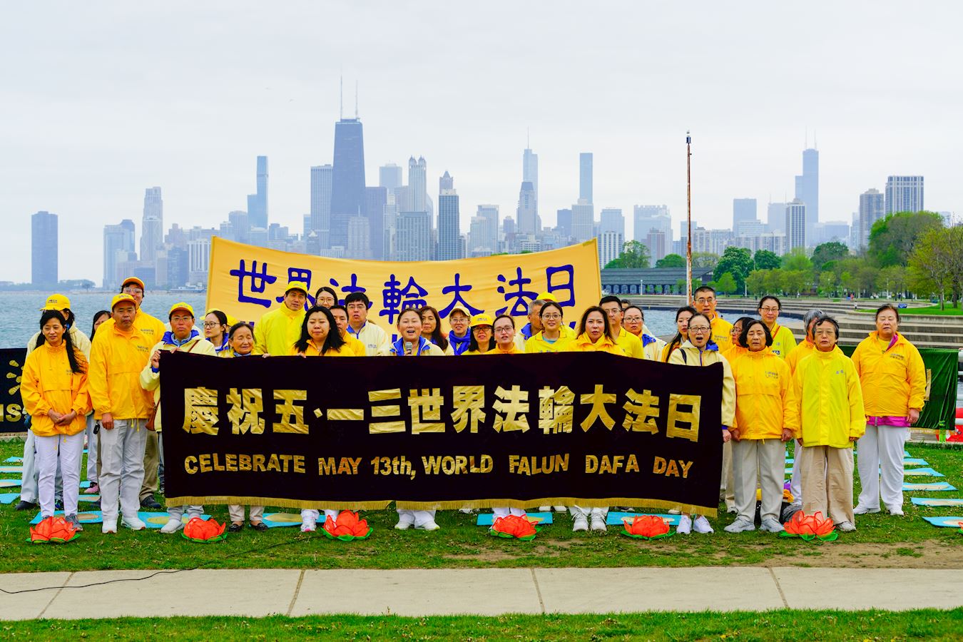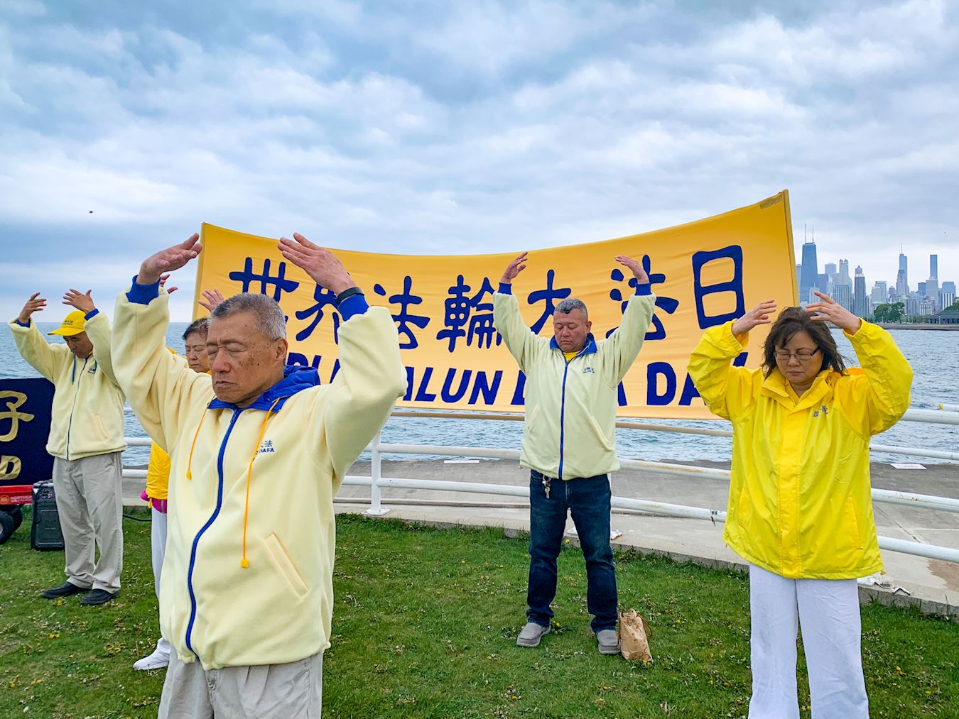 ![]() 图1~2:二零二三年五月十三日,大芝加哥地区部分法轮功学员聚集在密西根湖畔的和平信号纪念碑公园(Signal of Peace Monument)集体炼功、宣读伊州三个城市颁发的“法轮大法周”的褒奖庆祝世界法轮大法日,恭贺师父华诞。 |