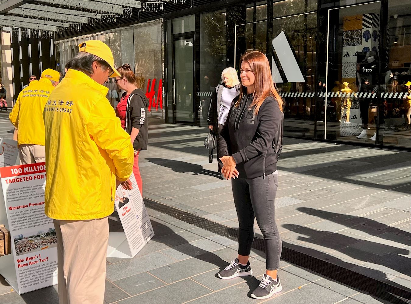 当得知法轮功学员们在中共的迫害下,二十多年来秉持自己的信仰,她说:“中共的迫害让人无法理解,活摘器官更是灭绝人性。法轮功学员一定内心非常强大,而且有着坚强的意志。我希望他们以后做得更好,继续努力,不要放弃,要多办像今天这样的活动,让更多人感兴趣,来了解他们。”