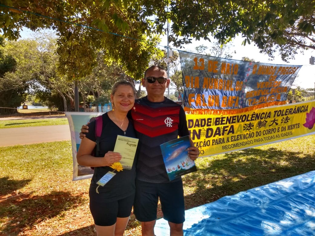 荷吉安尼(Regiane)是第二次来参加炼功,这天她把丈夫马塞罗(Marcelo)也带来了解大法,他们赞同法轮大法倡导的修炼心性,他们认为修身得先修心,这是很重要的。