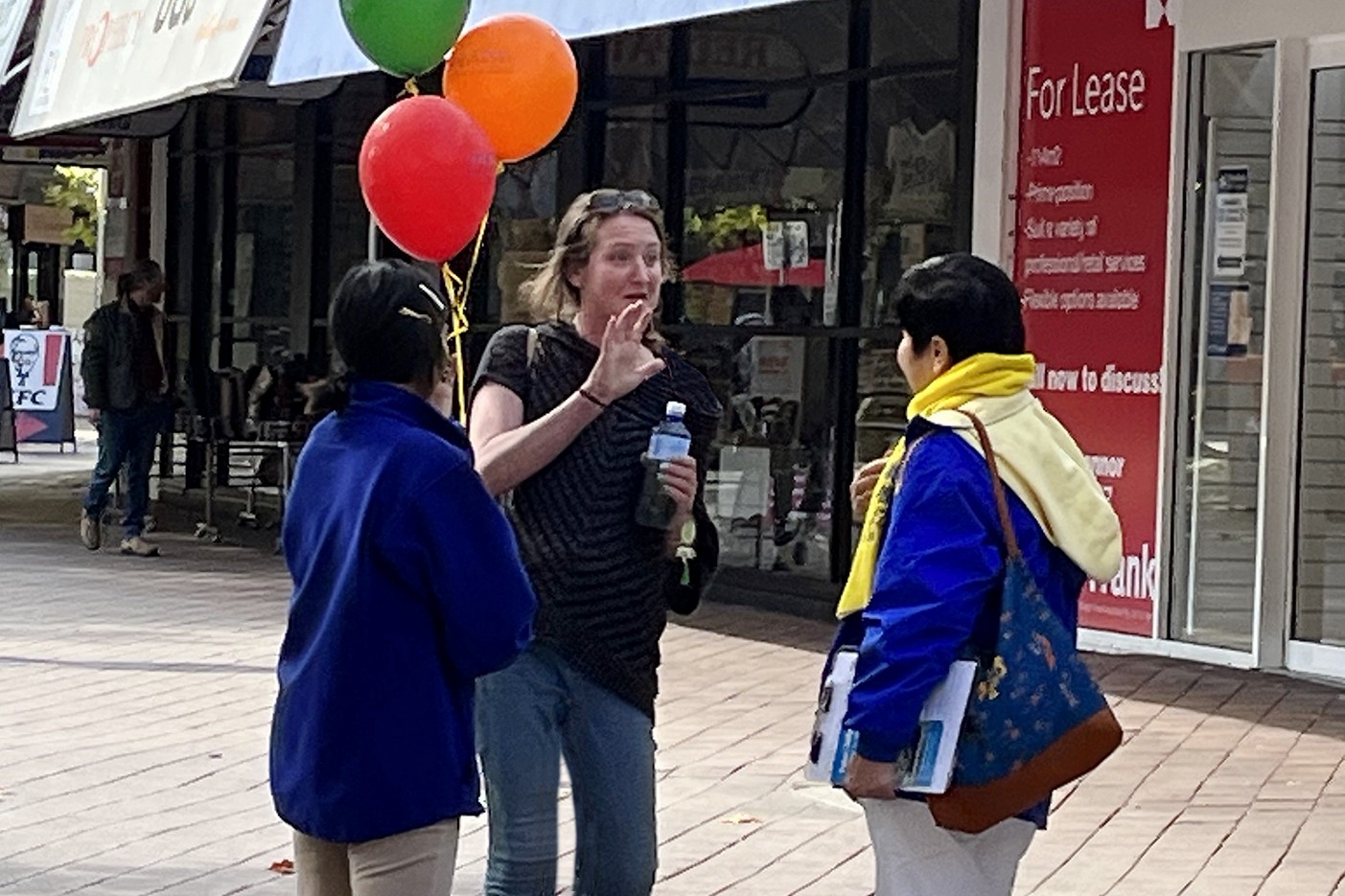 ![]() 图3:卡莉·凡妮莎(Carley Vanessa)在向法轮功学员学中文九字真言:“法轮大法好 真善忍好”。 |
