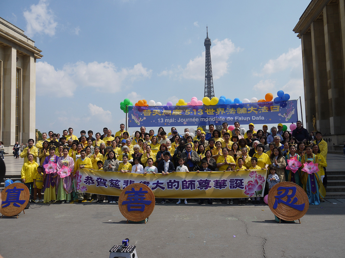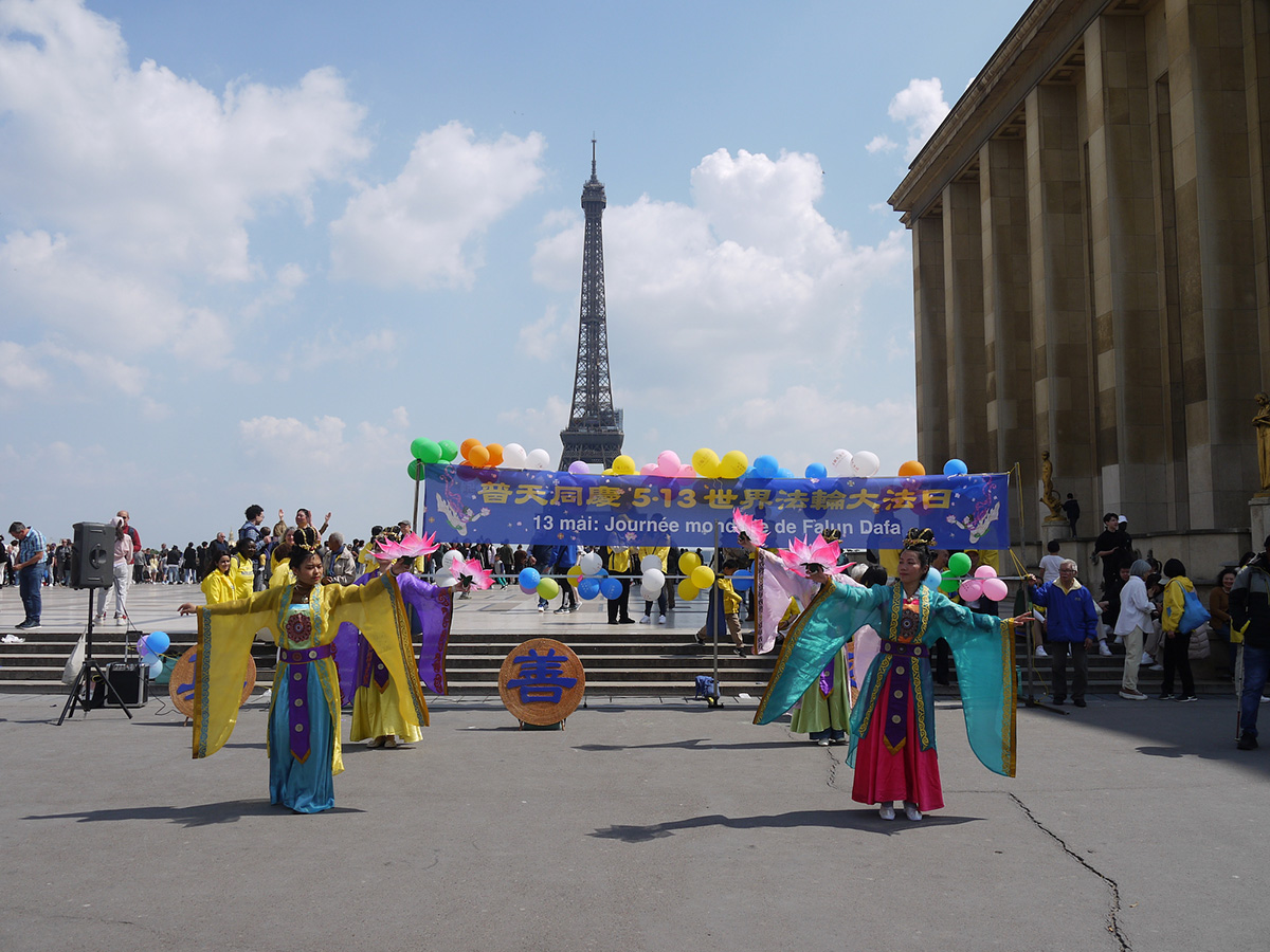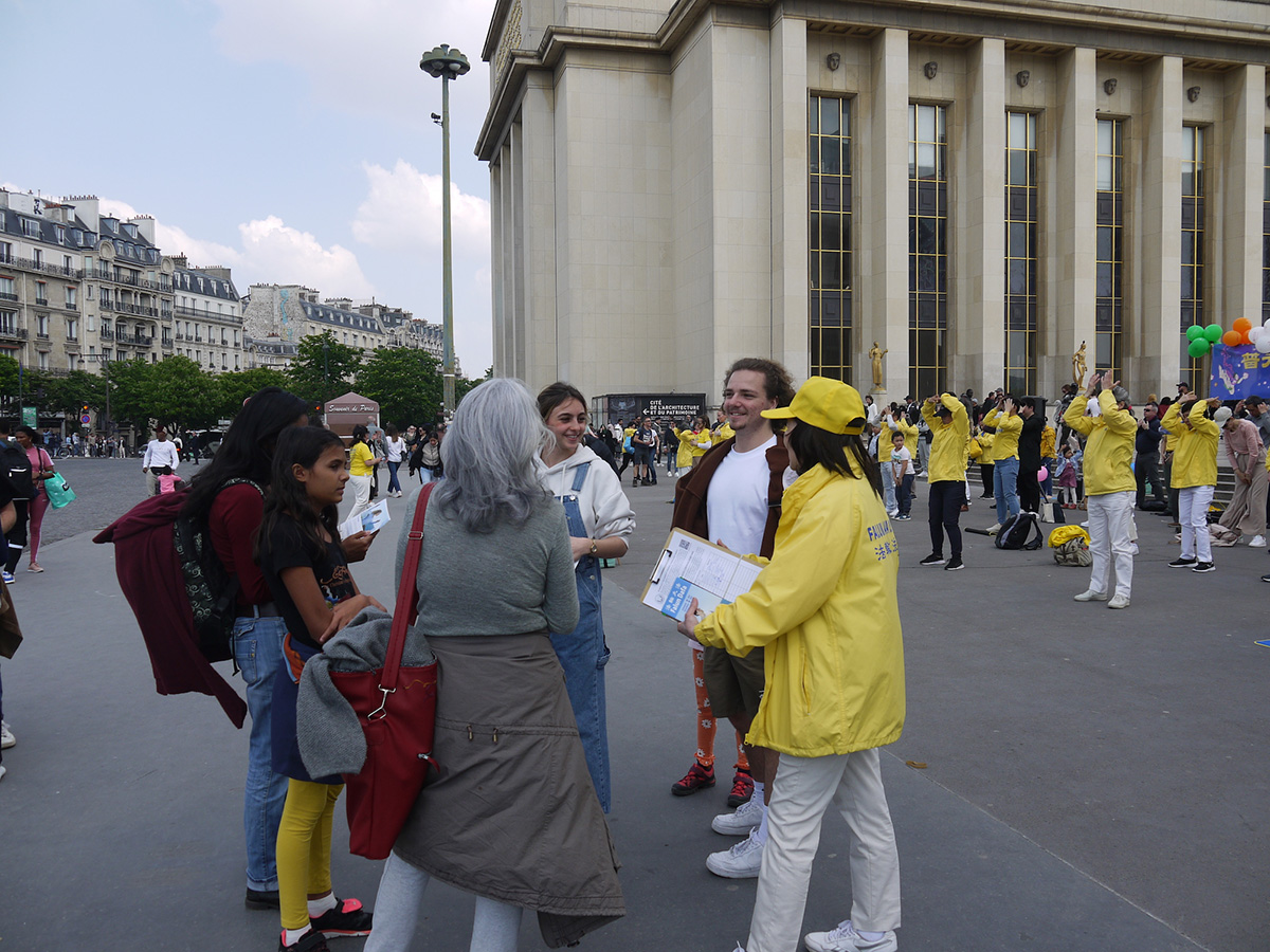 ![]() 图3:二零二三年五月十三日下午,法国部分法轮功学员聚集在埃菲尔铁塔的人权广场,庆祝世界法轮大法日 |