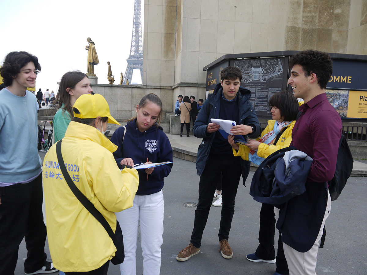 在法国高等商校读书的罗曼·梅扎伊德(Romain Mezaid)也在现场了解了真相。关于发生在中国活摘(法轮功学员)人体器官的罪恶,他说:“我已经在征签表上签名了,一个政府这样做,那真是很坏,必须揭露出来。”