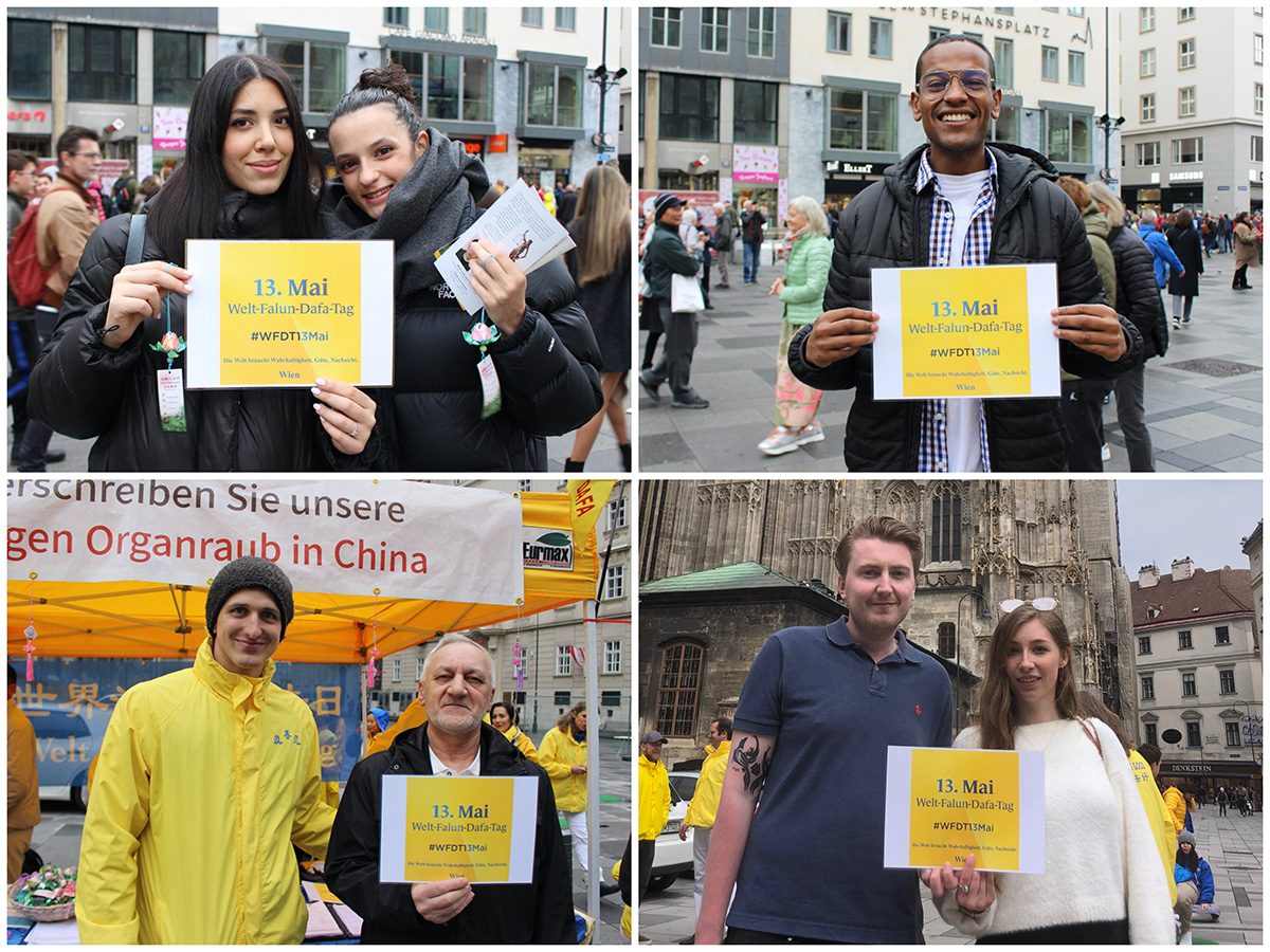 ![]() 图5:二零二三年五月十三日,奥地利法轮功学员在维也纳史蒂芬广场,庆祝法轮大法弘传三十一周年,恭祝师父生日快乐! |
