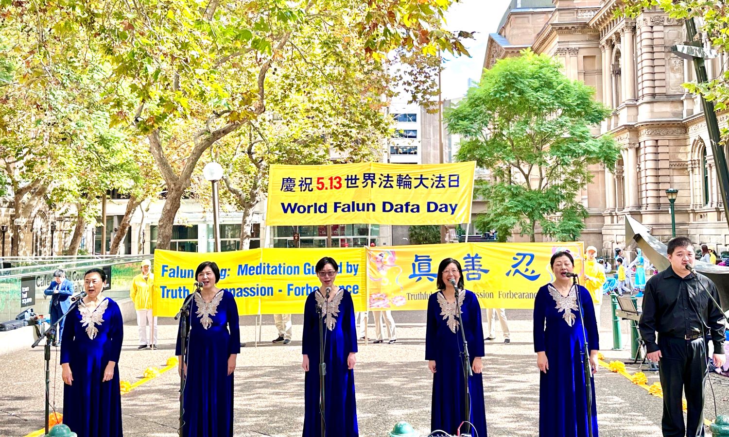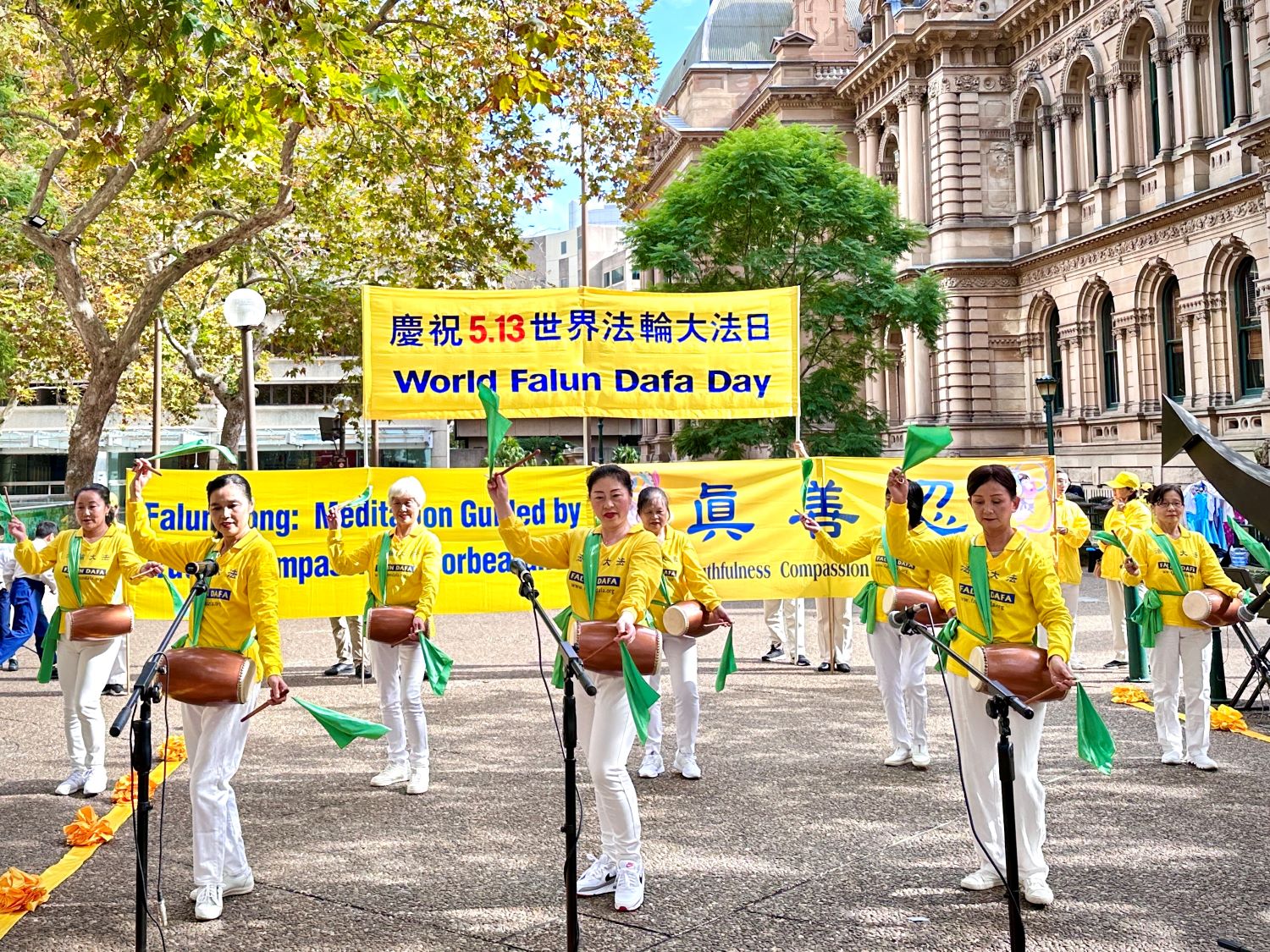 ![]() 图1:二零二三年五月十三日,悉尼法轮功学员欢庆世界法轮大法日举行集体炼功、文艺表演,不少民众驻足观赏。 |