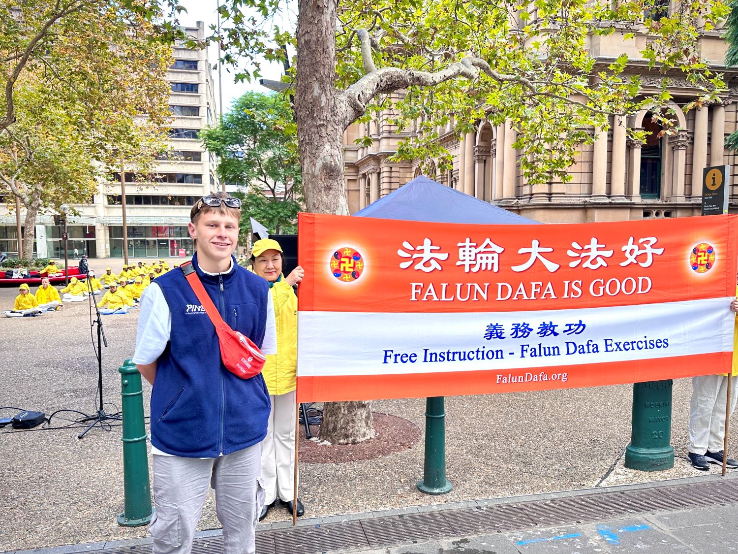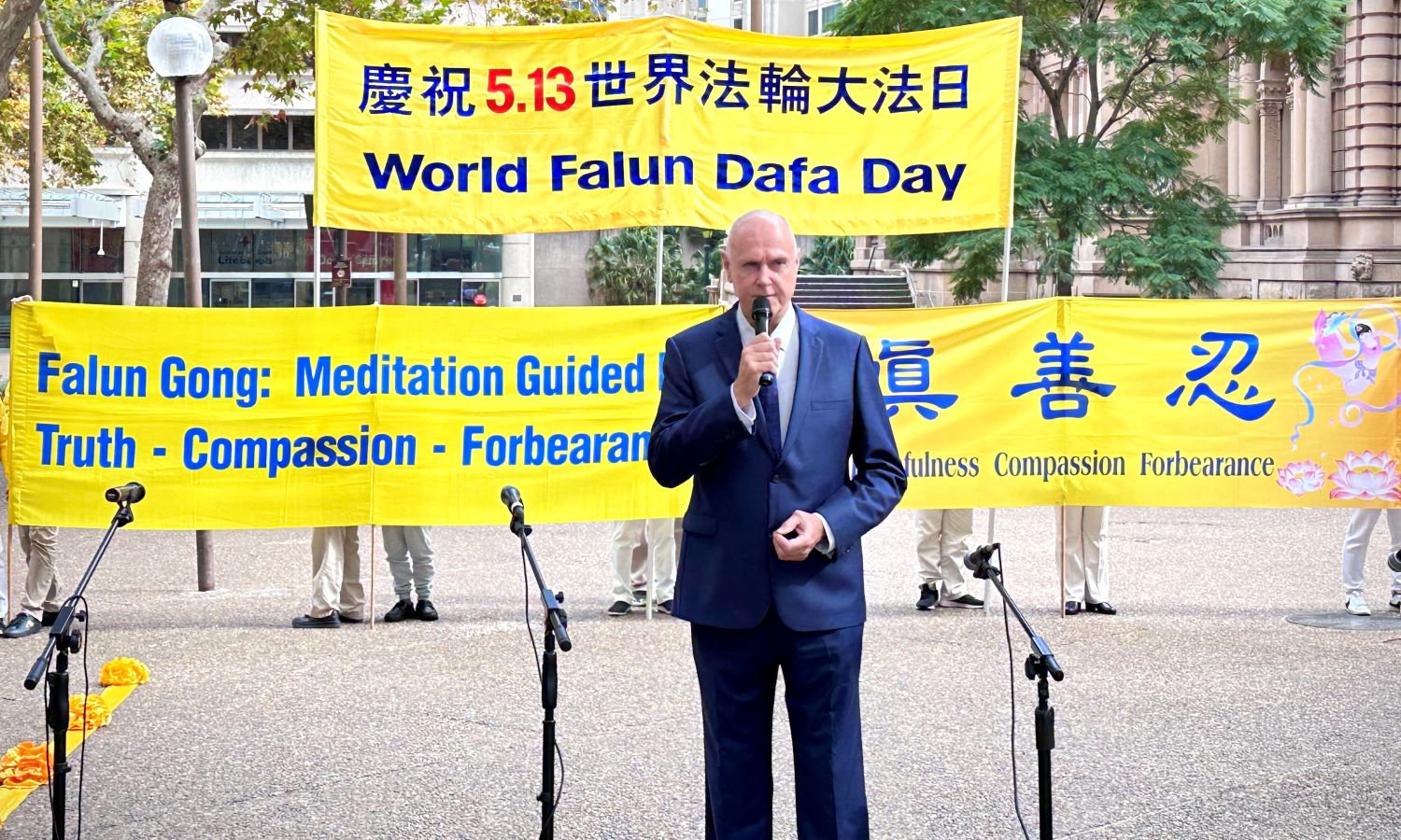 法轮大法澳洲佛学会发言人戴乐(John Deller)表示:“今天,我们希望更多的人能够了解法轮大法的美好。法轮大法的原则真、善、忍是普世价值,能使每个人受益,而且是免费教授的。无论你来自什么文化背景,说什么语言,或者你是富人还是穷人,这都不重要,每个人都是受欢迎的。”