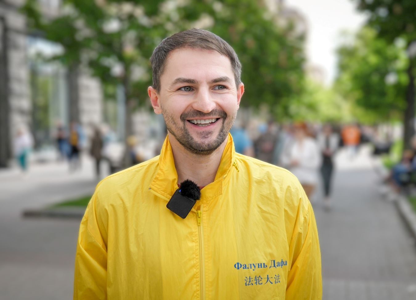 当天,安德烈(Andrey)从第聂伯罗(Dnipro)市赶来参加世界法轮大法日的庆祝活动。