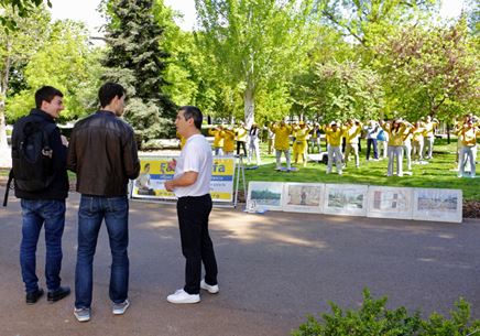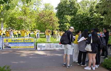 连续三周的周末,法轮功学员们在位于马德里市中心的著名旅游景点:莱蒂罗皇家公园弘法炼功,庆祝世界法轮大法日,恭祝慈悲伟大的师尊生日快乐。同时向世人展现法轮大法的美好及洪传全世界的盛况。