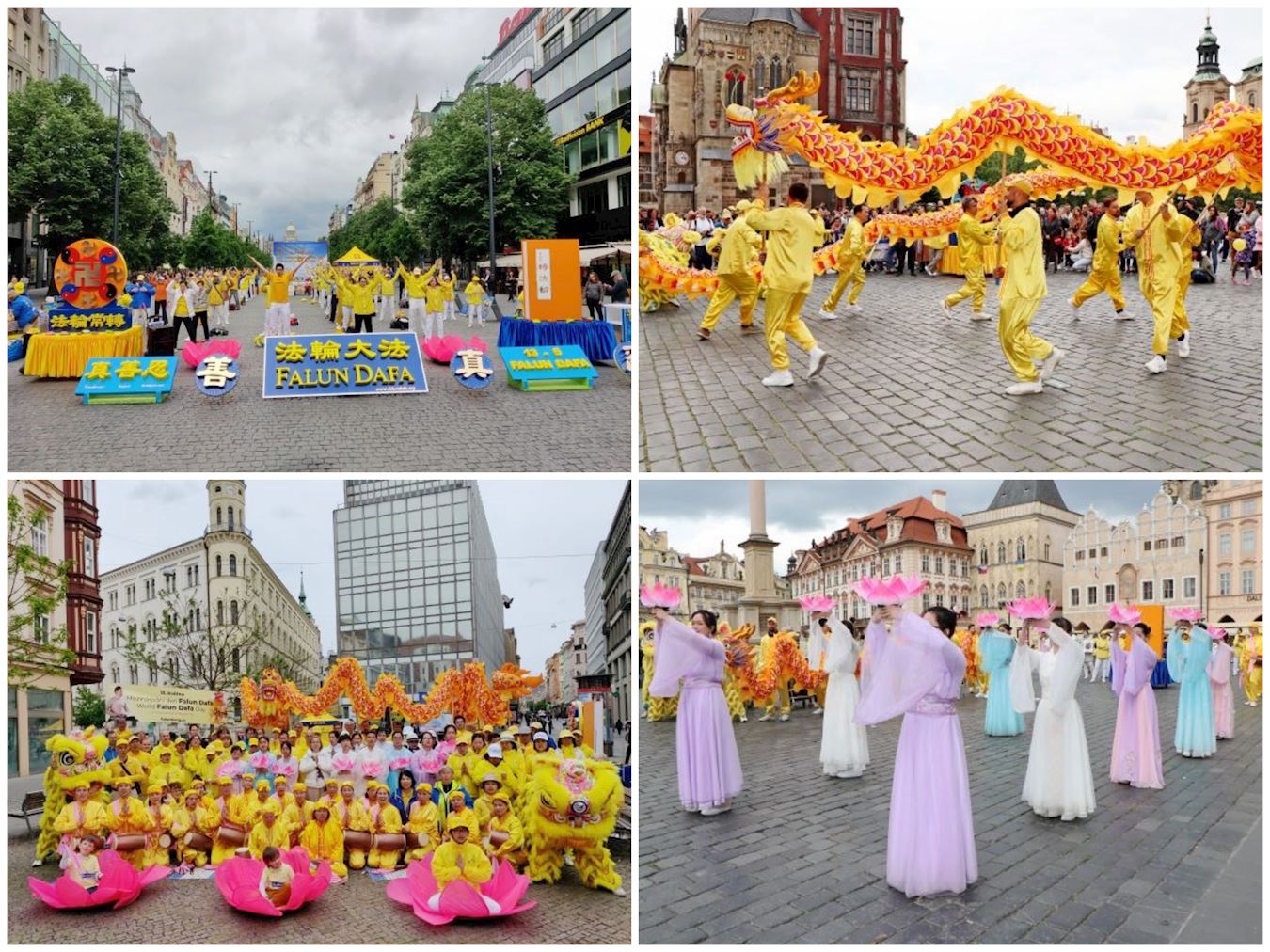 二零二三年五月十二和十三日,捷克法轮功学员先后在捷克第二大城市布尔诺市中心和首都布拉格瓦茨拉夫广场(Václavské náměstí)举行集体炼功,文艺表演方式,庆祝法轮大法弘传三十一周年,并向市民展现法轮大法的美好。