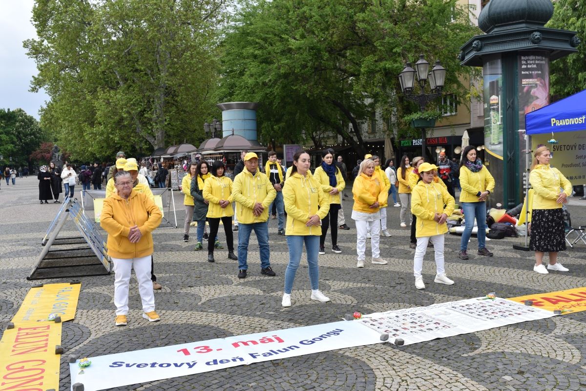 在活动中,法轮功学员还演示了法轮大法的功法,向路人发真相资料,并为要求斯洛伐克共和国总统谴责(中共)迫害法轮功的请愿书征集签名。许多路人表示声援,在制止在中国对法轮功的迫害请愿书上签名,许多人拍下了学员炼功的场面,还有些人甚至在现场学炼功法。有四名来自中国大陆的游客宣布退出中国共产党及其附属组织。