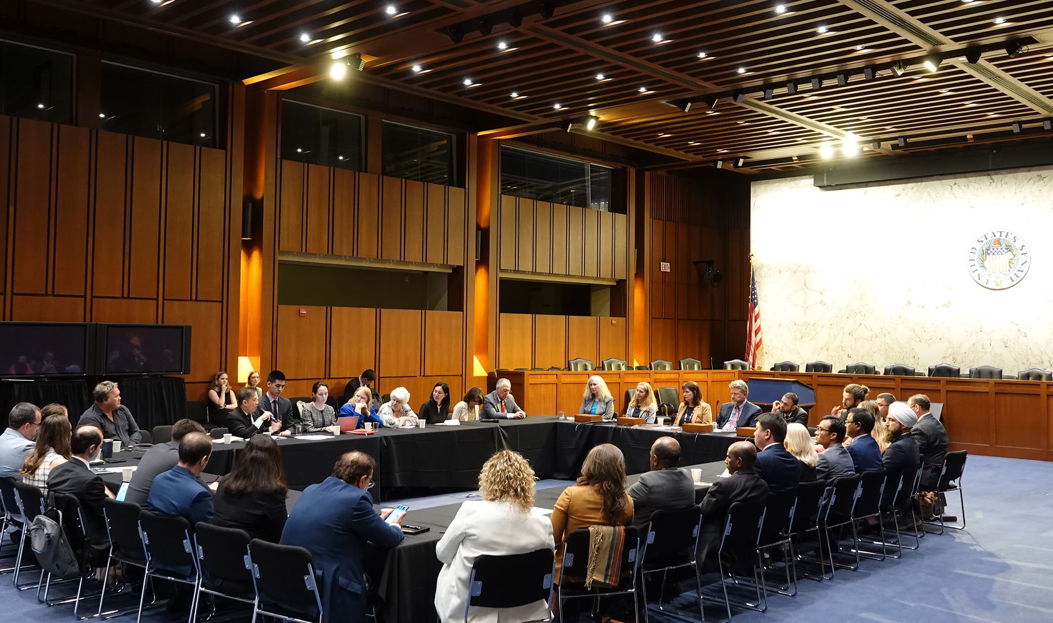 随后,在美国国会参议院哈特办公大楼举行的圆桌会议上,美国国务院宗教自由大使侯赛因(Rashad Hussain)听取了法轮功学员王珊珊讲述全家人遭受中共迫害的经历。