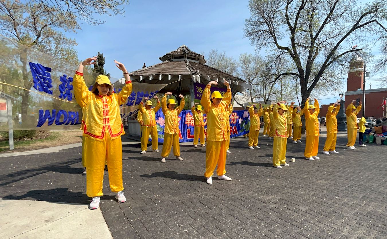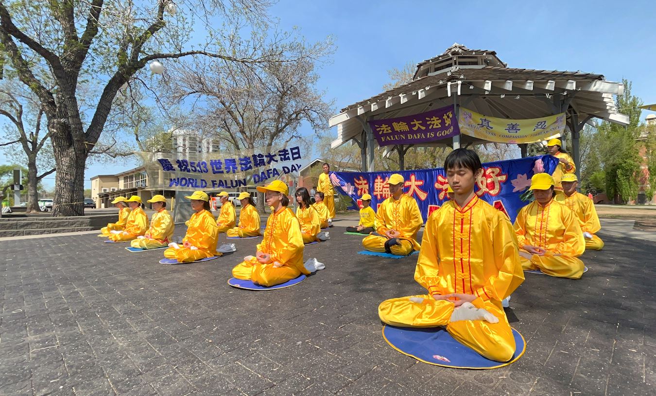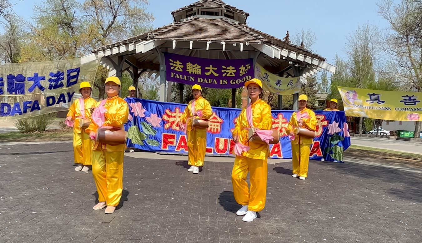 ![]() 图1~2:二零二三年五月十三日,埃德蒙顿法轮功学员集体炼功,庆祝世界法轮大法日,恭祝师尊华诞 |