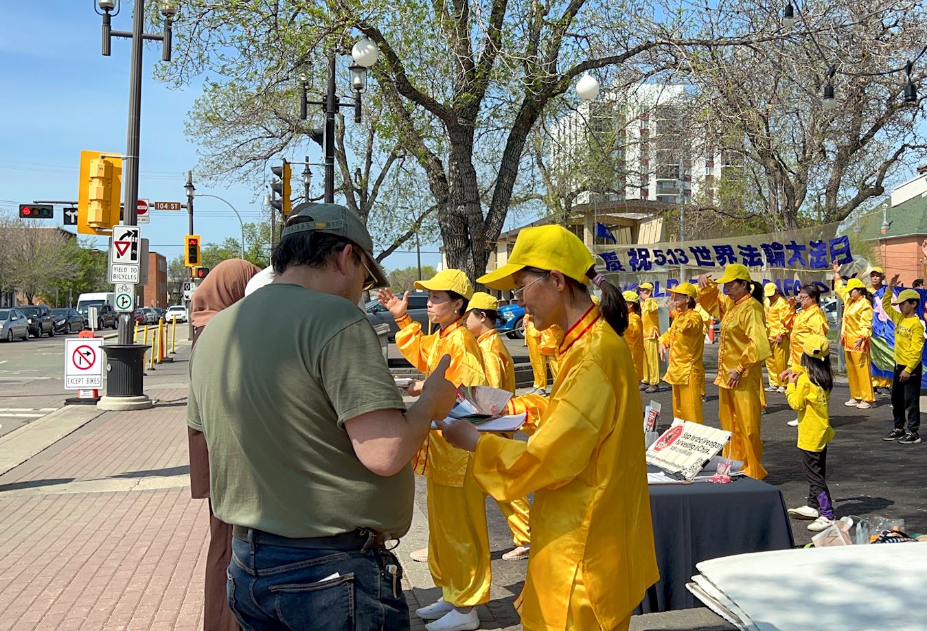 ![]() 图4:世界法轮大法日,埃德蒙顿民众了解真相,在请愿书上签名表达支持 |
