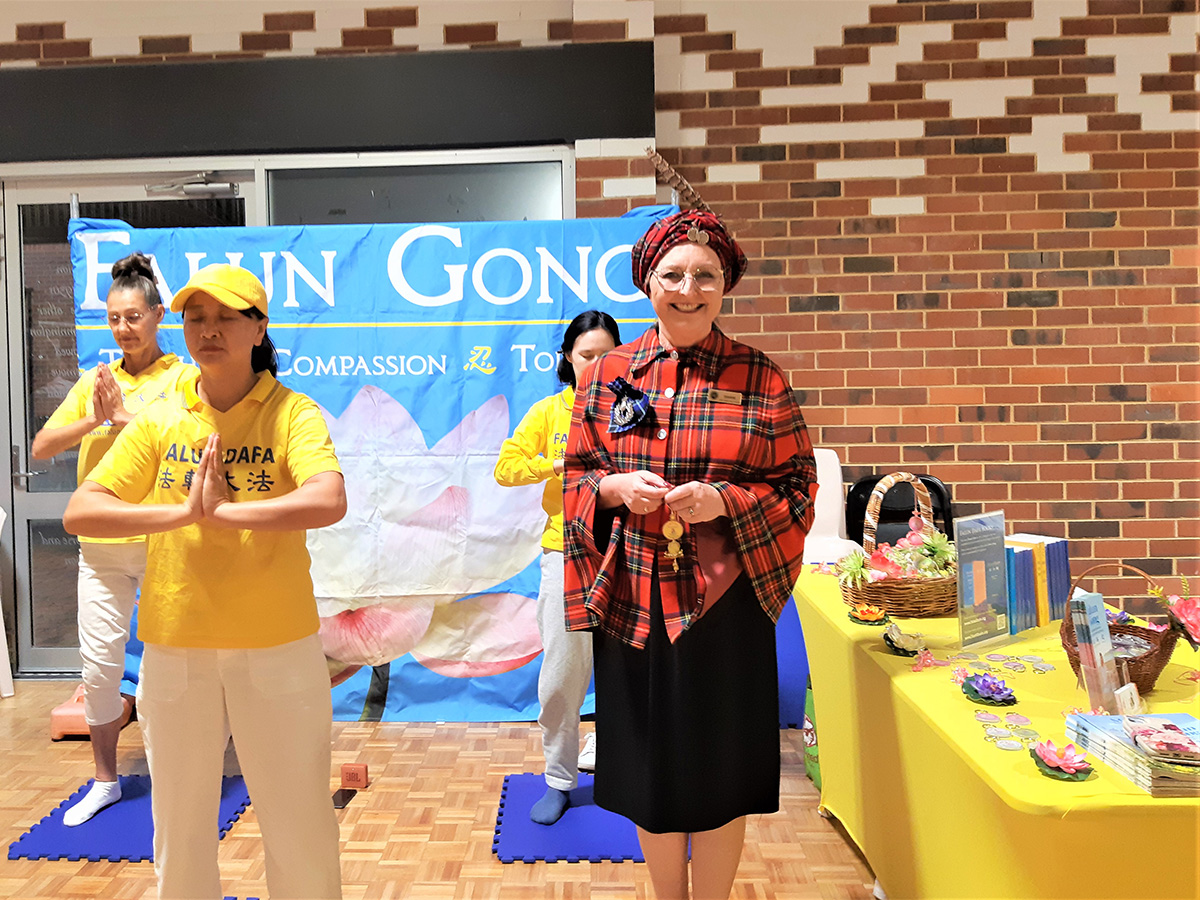 主办方坎宁农业、园艺和娱乐协会会长玛克辛·怀利(Maxine Wylie)称赞正在演示法轮功五套功法的学员做得很好,法轮功学员的专注和纯正祥和的能量场吸引她驻足观看。她说:“我特意停下来看了看正在炼功的法轮功学员,她们似乎远离了噪音,看起来很放松。”
