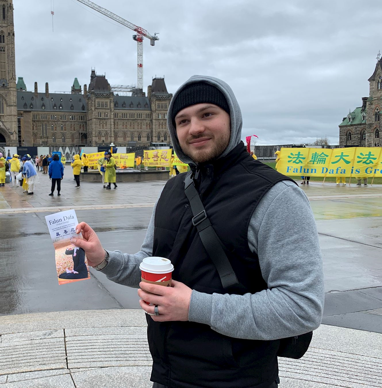 渥太华任职保安的鲍里斯先生(Poras)见到法轮功学员说:“之前有很多群体来国会山前抗议,今天当我了解后,我才发现这个群体是炼功人,非常平和。他们在草地上享受炼功的乐趣。”