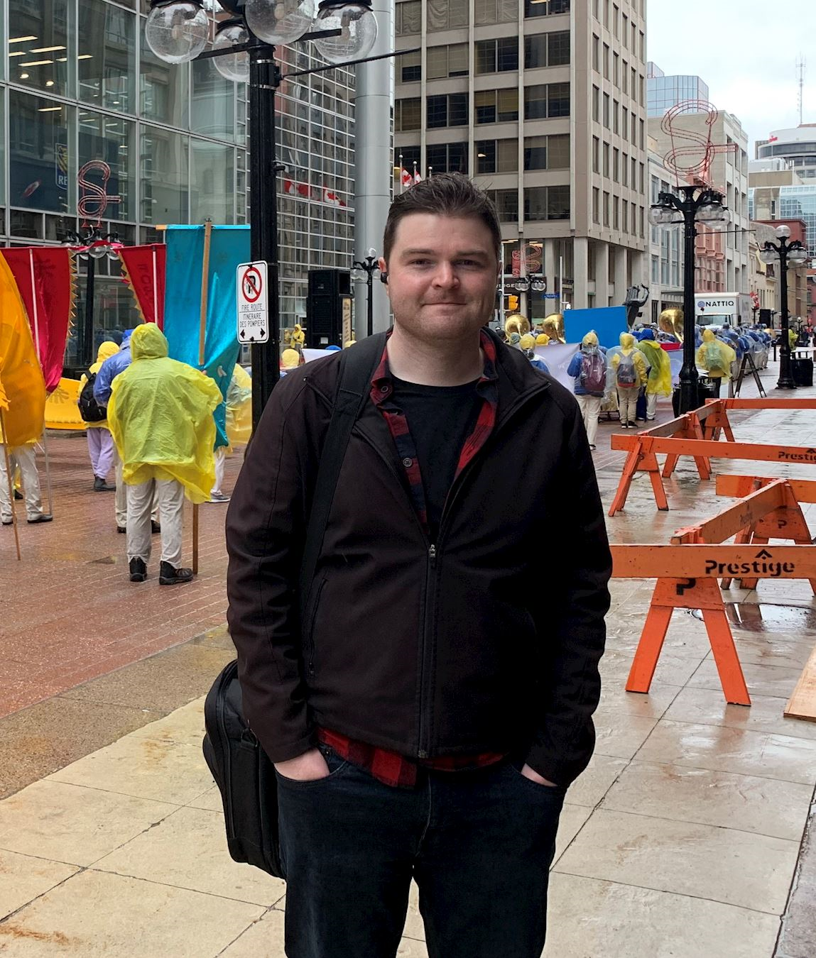 ![]() 图15:来自安省桑德贝(Thunder Bay)的机械工程师西蒙(Simon)先生在观看游行时也在用手机录像。 |