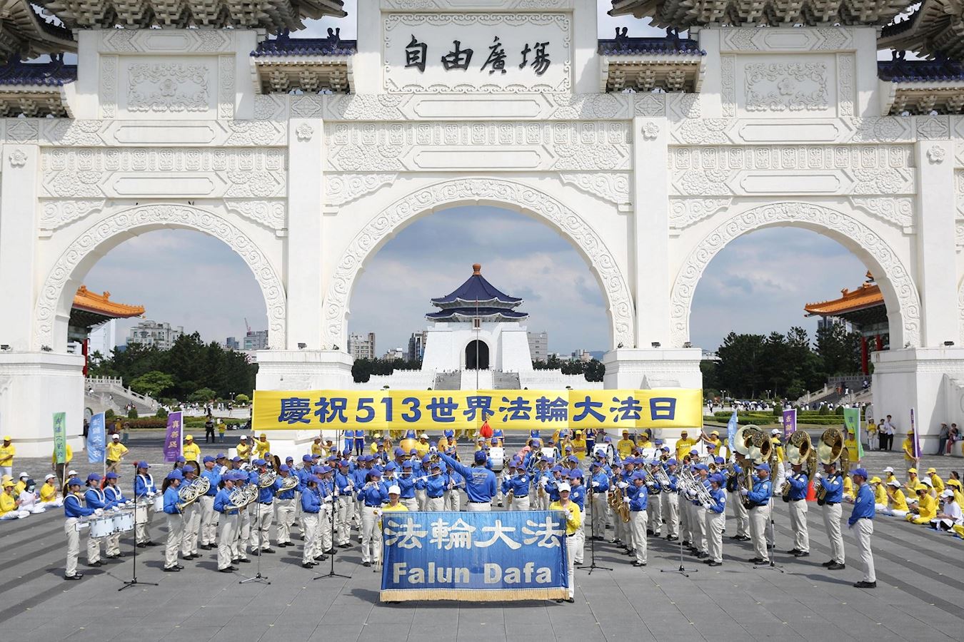 ![]() 图1:二零二三年五月六日,台湾北部近法轮功学员在台北自由广场,举办庆祝法轮功弘传31周年。图中,天国乐团在演奏。 |