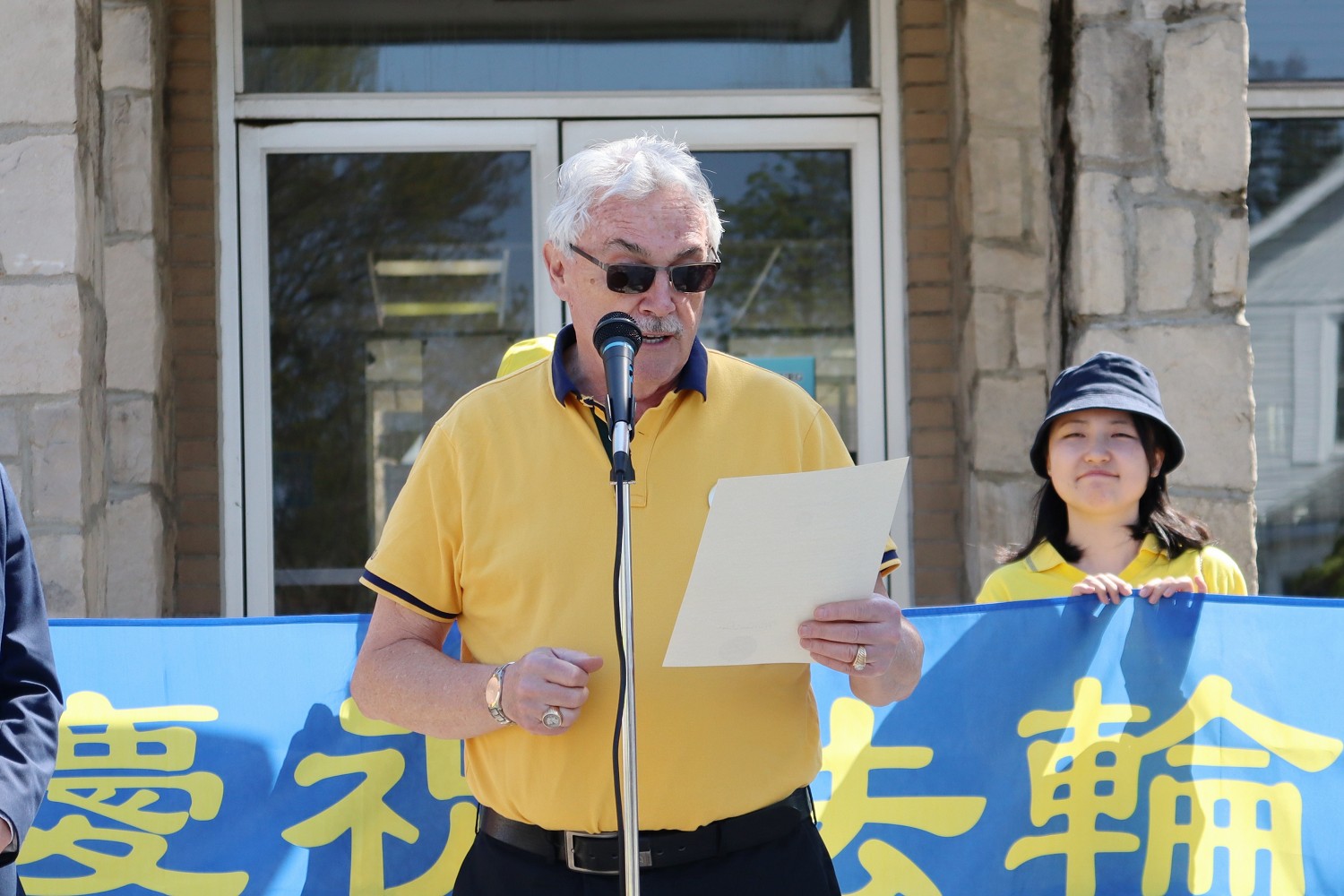 市长迈克尔·普鲁宣读贺信:“阿默斯特堡镇恭迎二零二三年五月十三日法轮大法日。