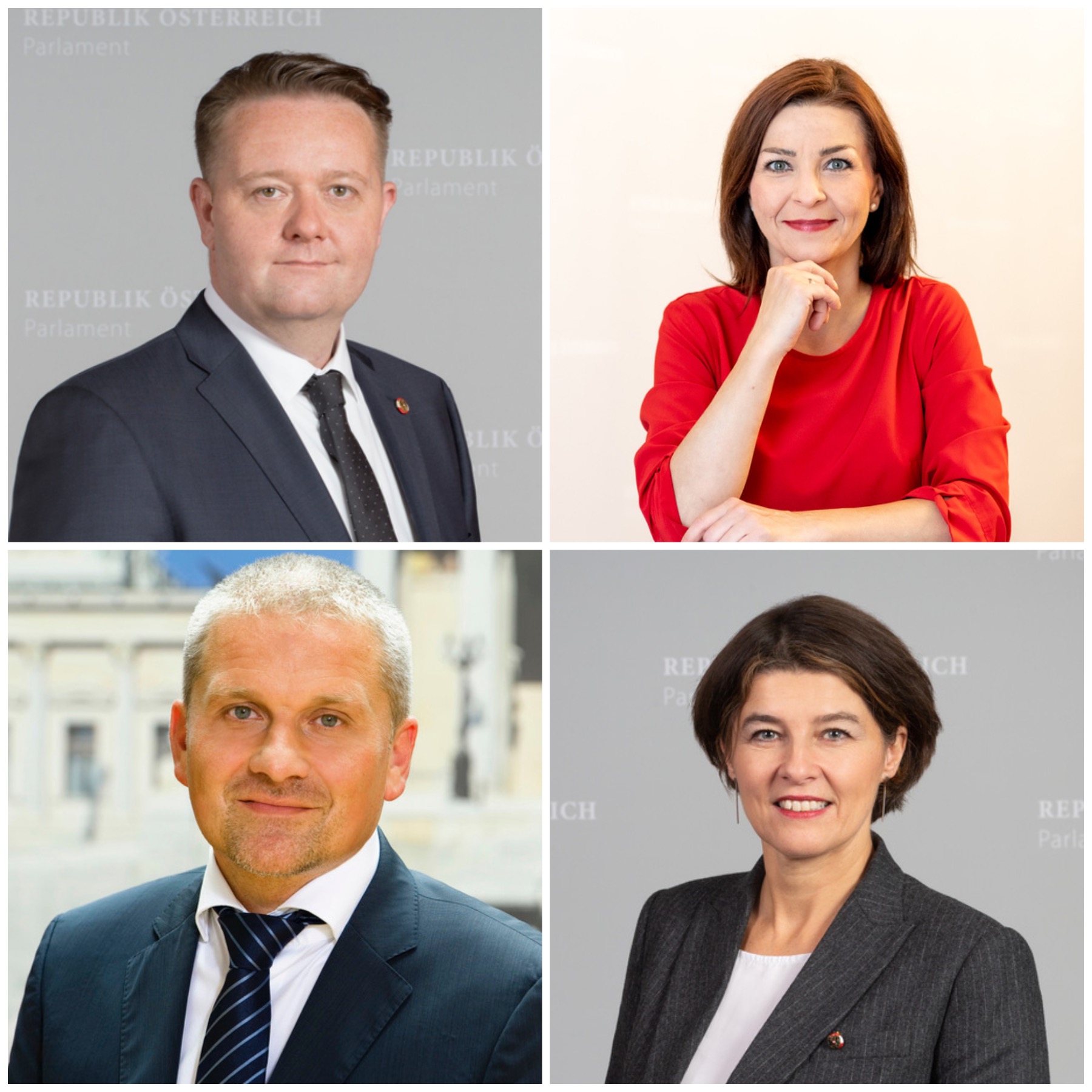![]() 图7:在法轮大法弘传三十一周年之际,奥地利国会议员马力欧·林德纳(Mario Lindner,上左)、伊娃·欧内斯特-吉耶季奇博士(Dr. Ewa Ernst-Dziedzic,上右)、克里斯蒂安·劳什(Christian Lausch,下左)和伊丽莎白·葛斯博士(Dr. Elisabeth Götze,下右)致函祝贺法轮大法日。 |