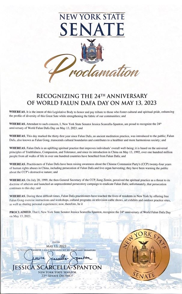 • 四位纽约州参议员颁发法轮大法褒奖令