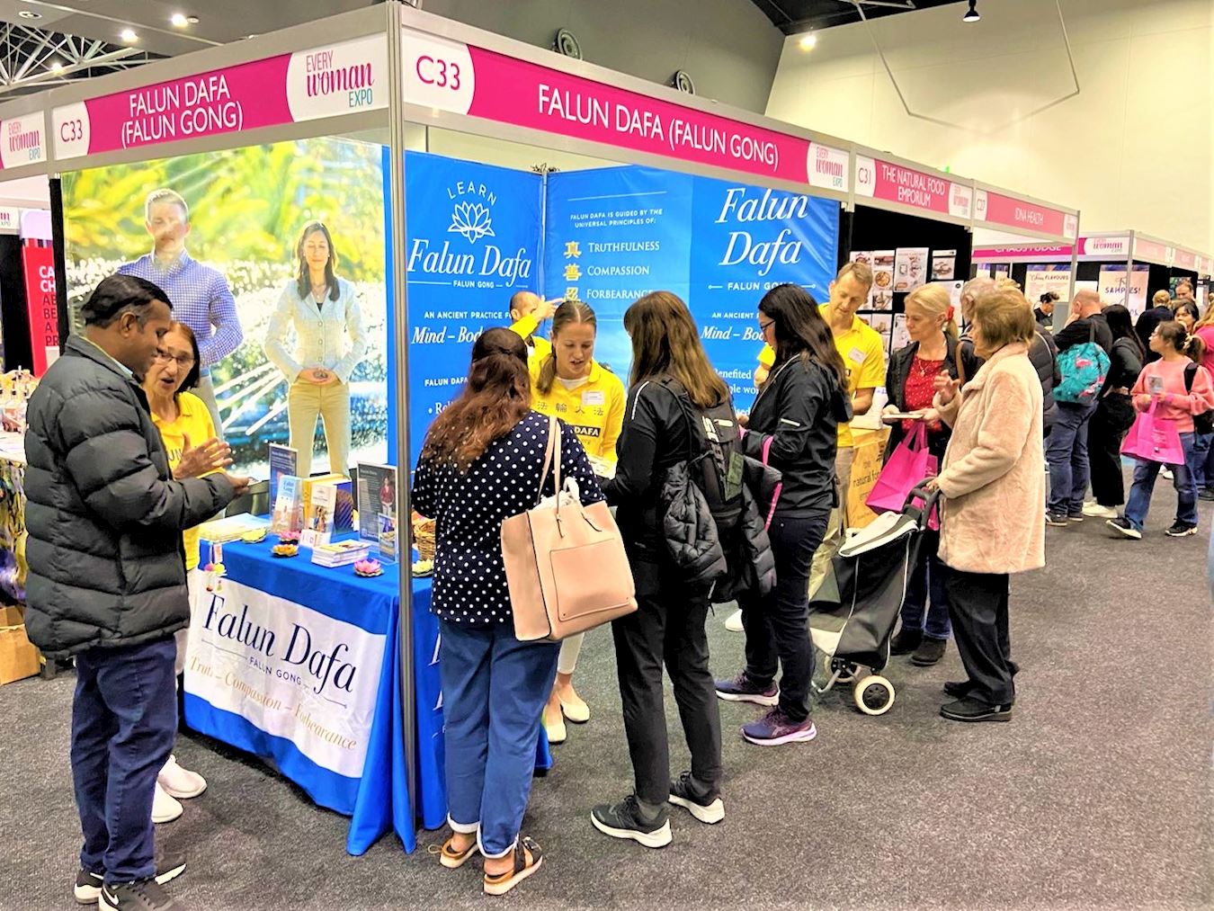 展会上,法轮功展位格外引人注目,学员们在明亮的蓝色幕布前,演示法轮功的五套功法,吸引大量民众驻足观看。很多参观者表示对学炼法轮功很感兴趣,并询问相关信息。有的说:“你们展位上的能量绝对是惊人的,十分具有吸引力。”有的说:“真、善、忍,这是你能做的最好的事情。”
