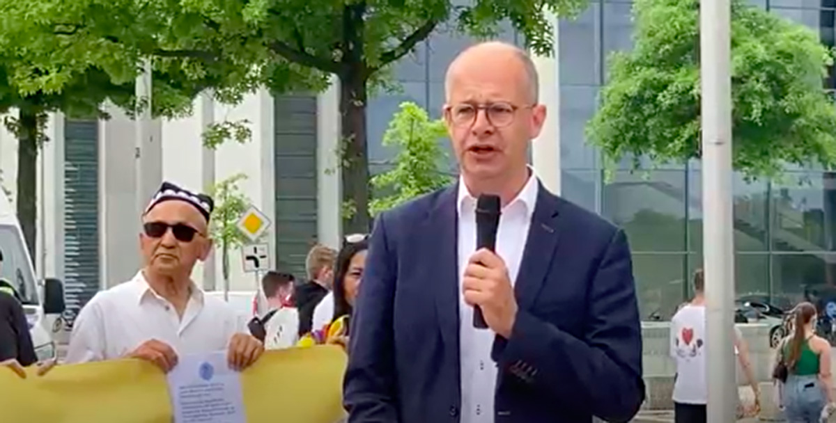 德国基民盟籍(CDU)国会议员、人权政治家布兰德(Michael Brand)上午来到总理府前加入抗议行列,并发表讲话。