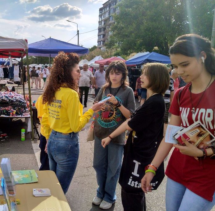 十八岁的米哈埃拉(Mihaela)很高兴与学员谈论法轮大法。她说:“应该让尽可能多的人,特别是年轻人,了解真、善、忍的道德准则,这非常重要。因为败坏的社会有太多的诱惑,年轻人会被不好的东西所吸引。”