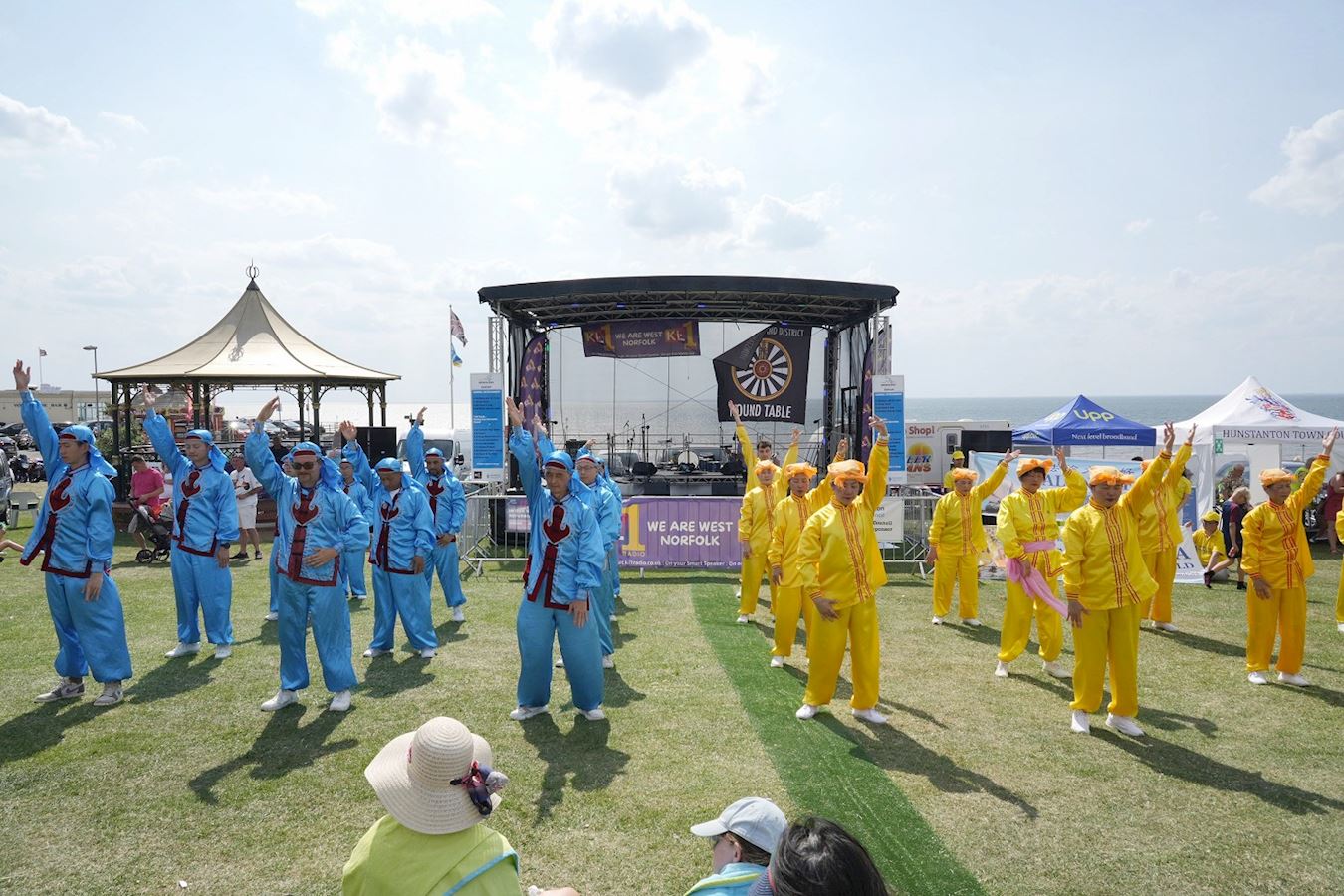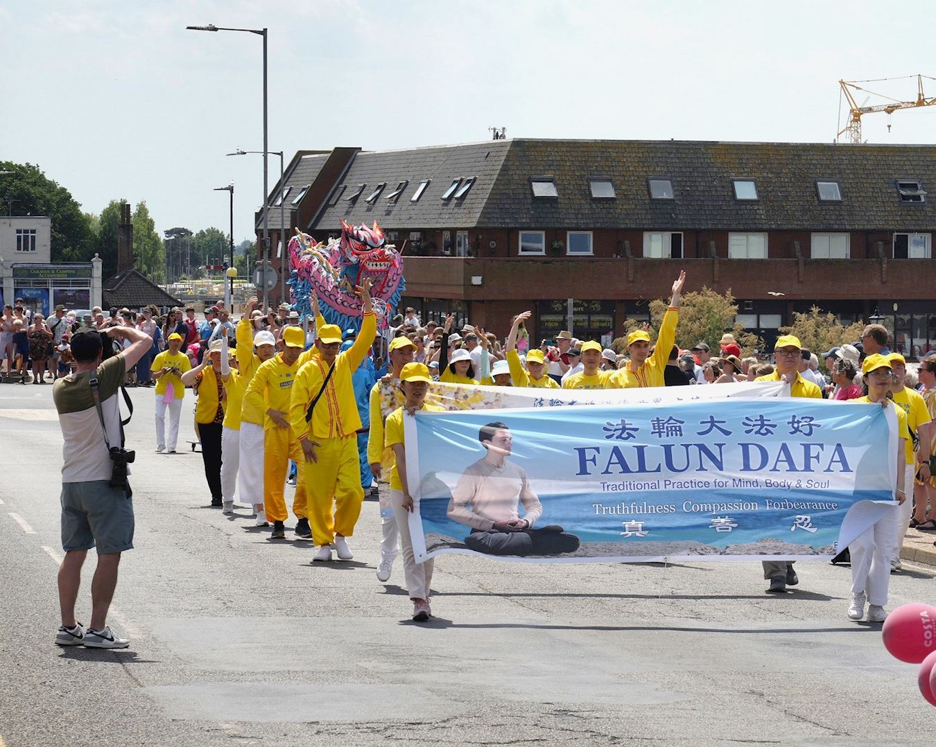 ![]() 图1:二零二三年六月二十五日,英国法轮功学员参加了诺福克郡(Norfolk)亨斯坦顿的嘉年华周末庆典游行。 |