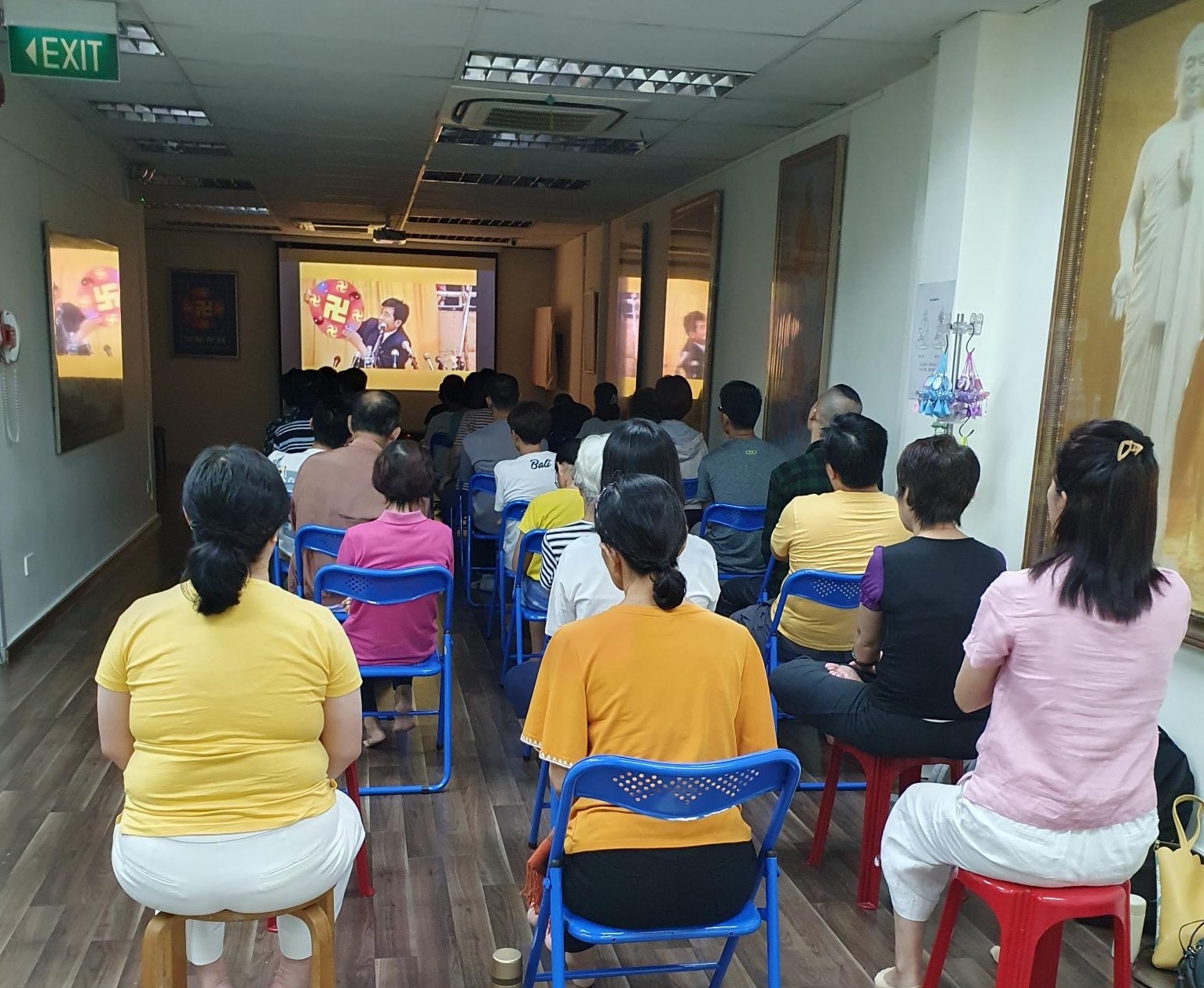 ![]() 图:新学员们观看法轮大法创始人李洪志先生的讲法录像。 |