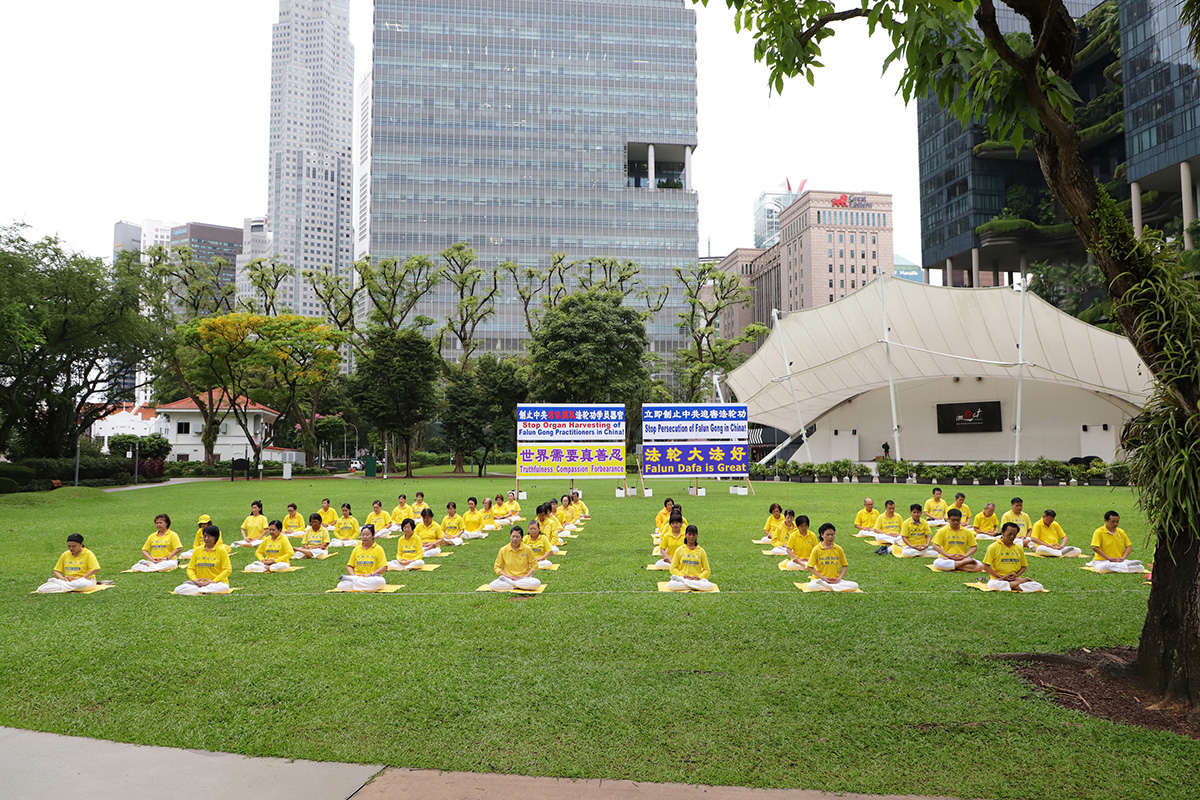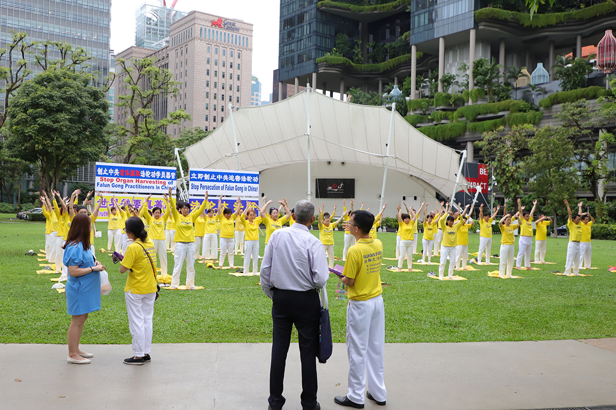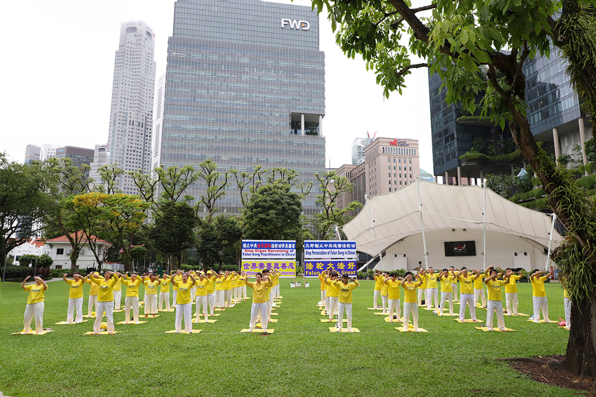 新加坡法轮佛学会发言人林先生在集会上介绍:“一九九九年七月二十日,中共开始全面镇压法轮功。从那时起,数百万人被关押在监狱、劳教所和其它设施中,数十万人在监禁期间遭受酷刑。突破封锁已证实被迫害致死的法轮功学员有4974名。残酷迫害至今仍在继续……”