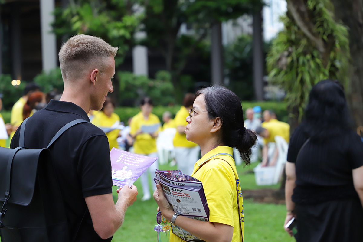 在新加坡工作的菲律宾人埃夫伦(Efren)说:“我反对活摘器官,这是不人道的,我支持法轮功学员这个活动。”