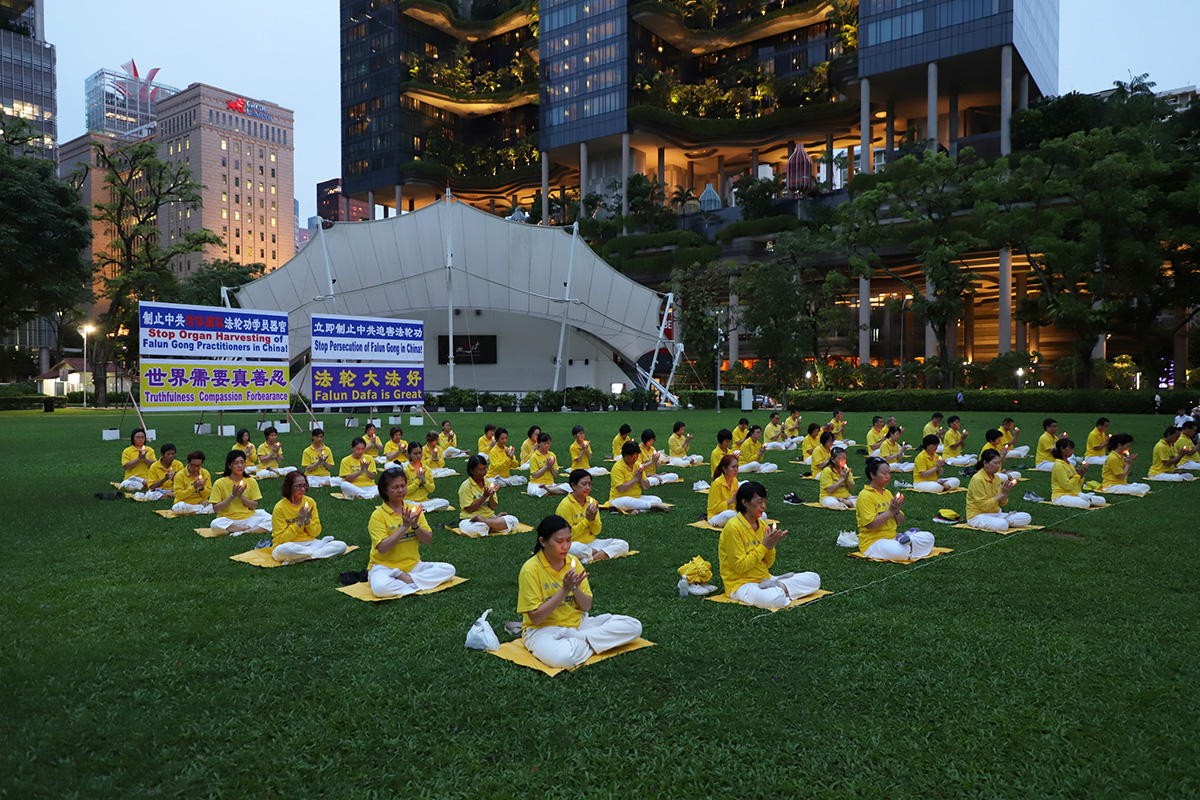 ![]() 图1~2:二零二三年七月十一日傍晚,新加坡法轮功学员在芳林公园举办反迫害二十四周年的纪念活动。图为学员们在集体炼功。 |
