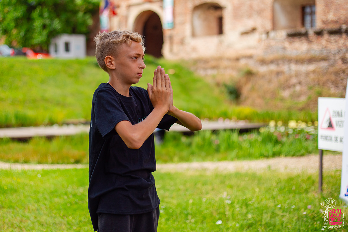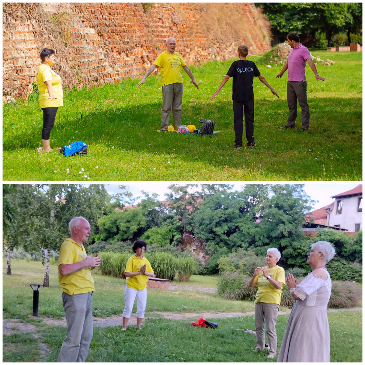 ![]() 图1:二零二三年六月二十四日和二十五日,法轮功学员应邀参加了“圣拉斯洛日”文化节,在文化节上义务教人们法轮功功法。 |