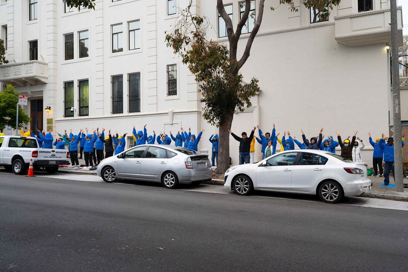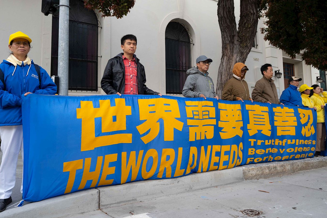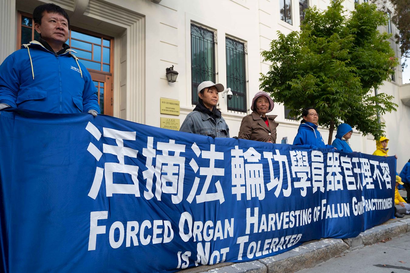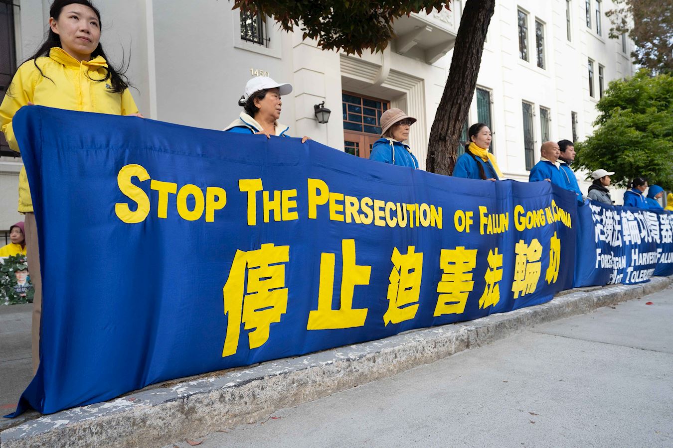 '图1~9:法轮功学员在旧金山中领馆前举行烛光夜悼活动'