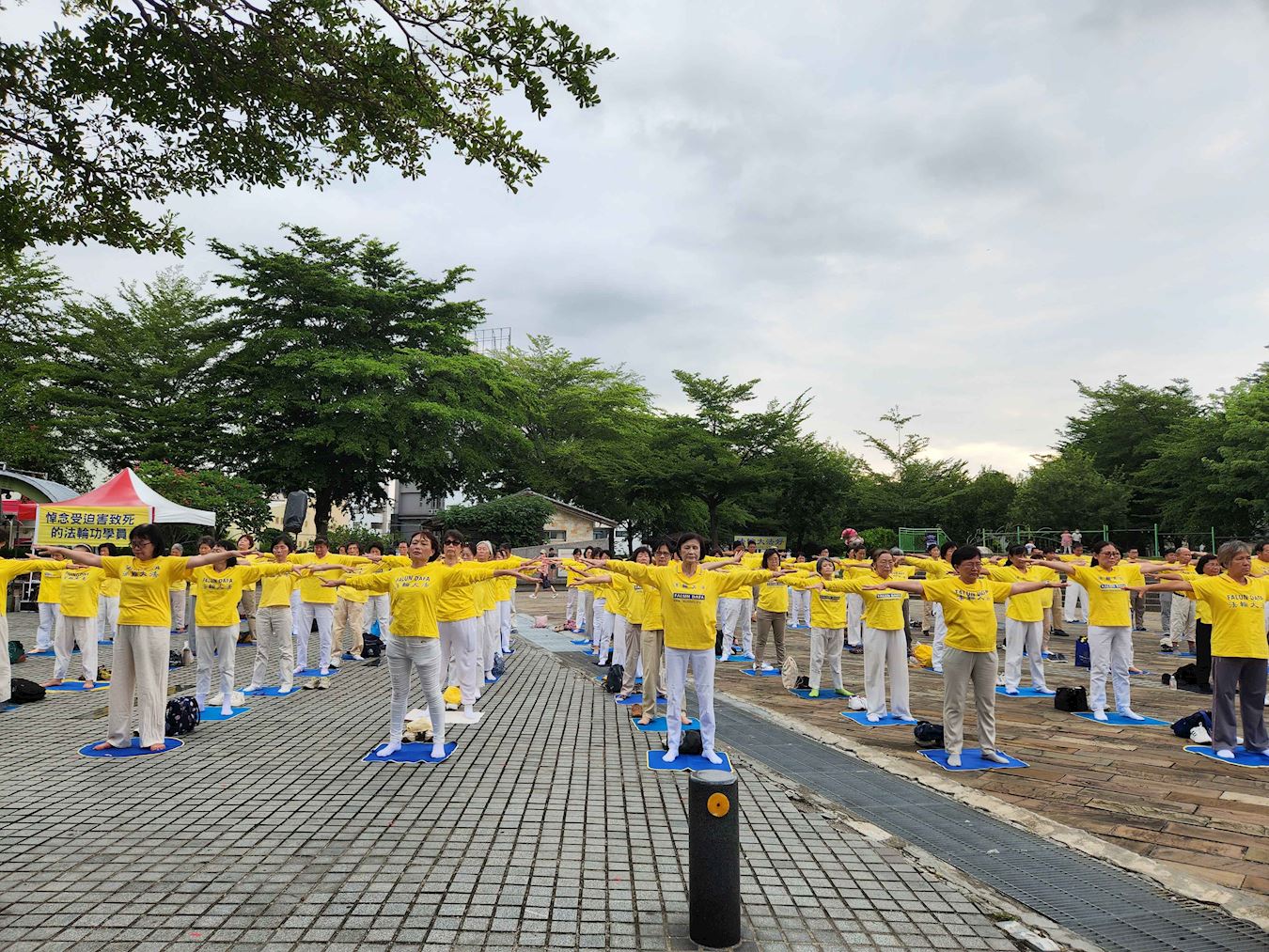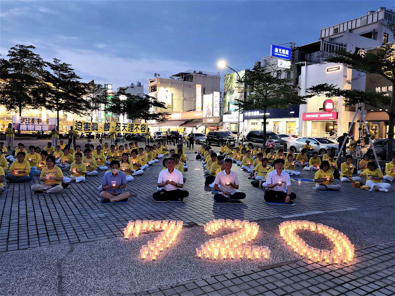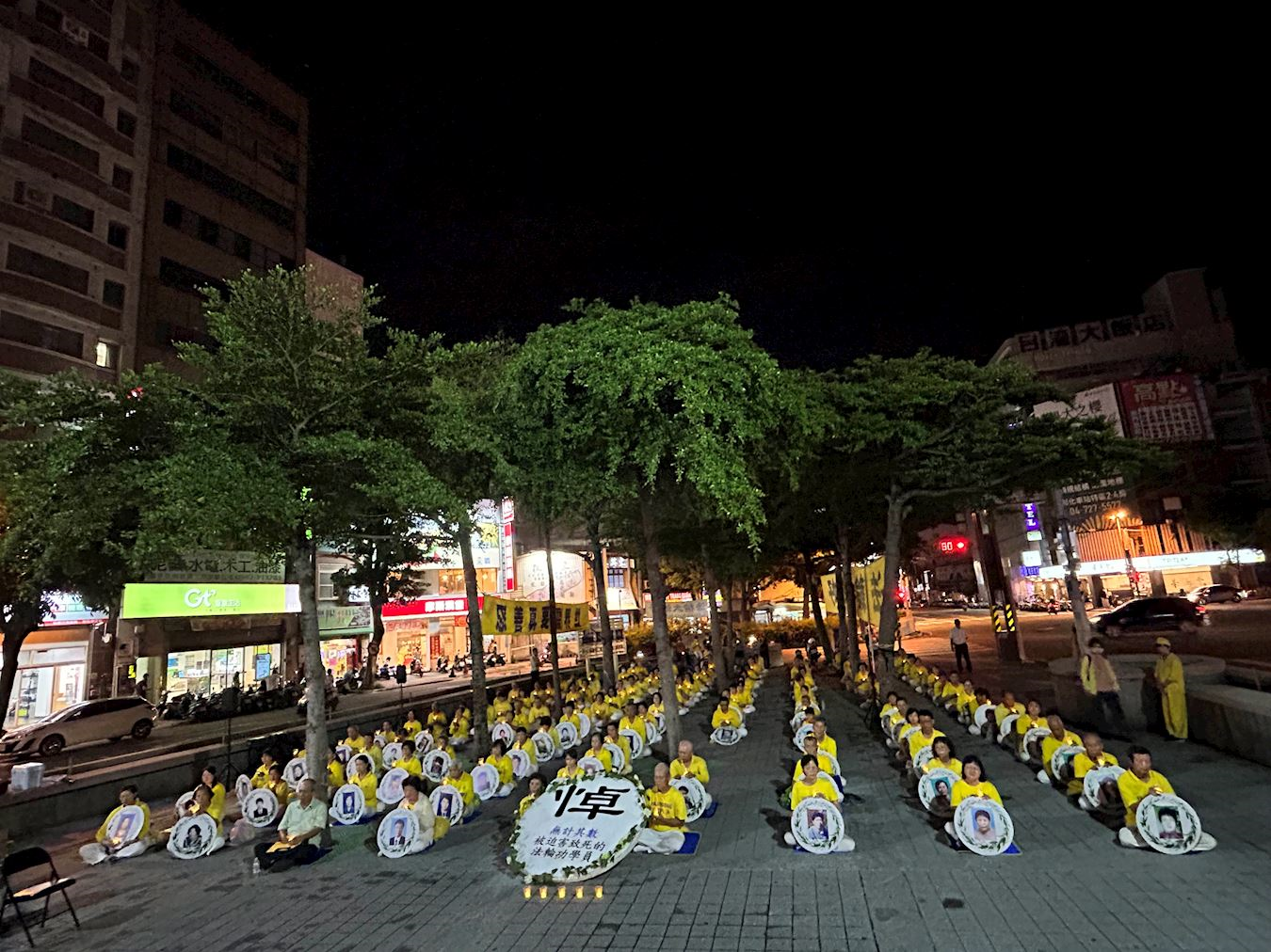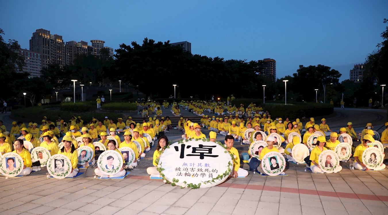 图1:七月十五日下午,大台中地区的法轮功学员聚集在文心森林公园举办反迫害烛光悼念活动。