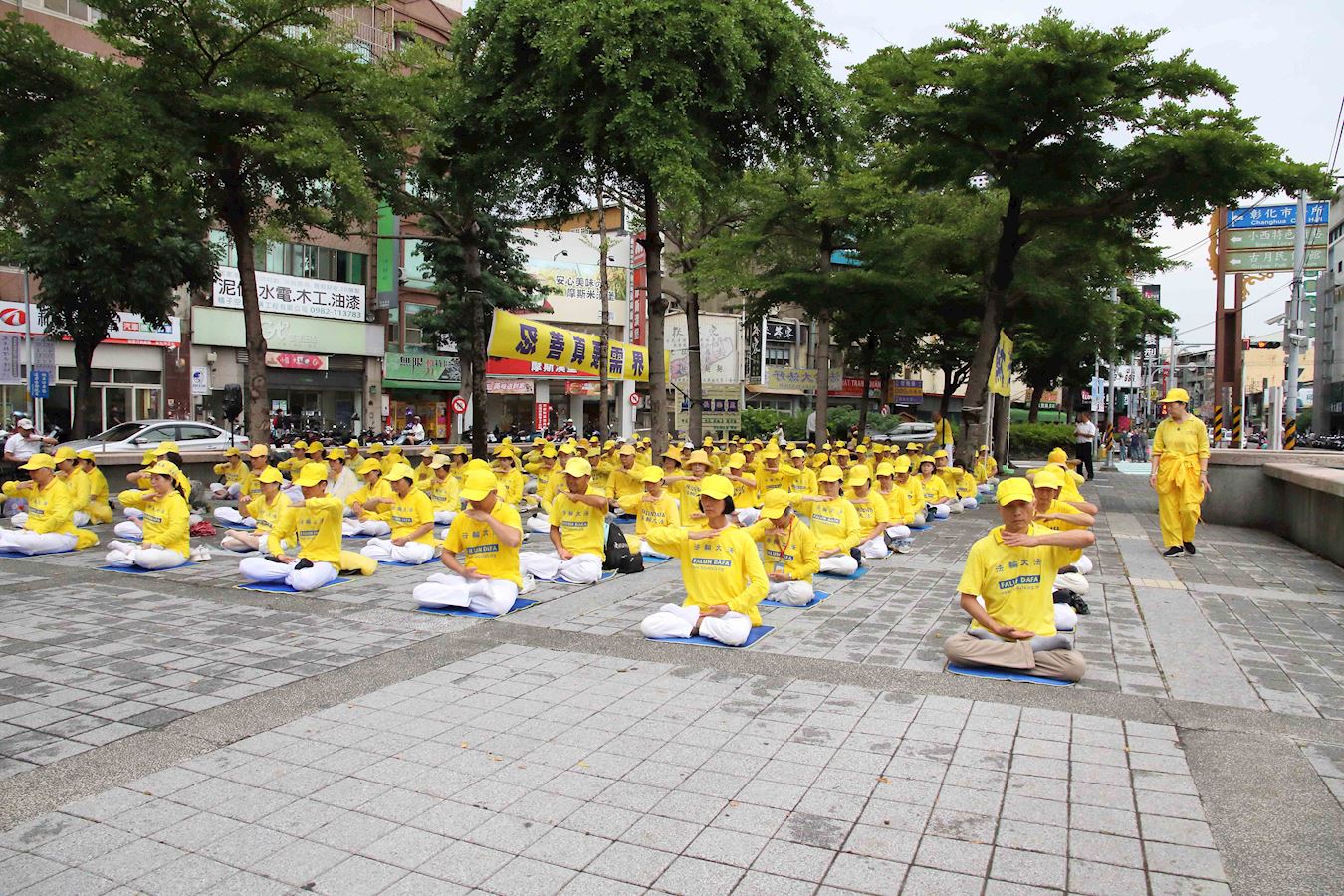 图3:七月十六日下午,彰化及南投的学员汇聚在彰化火车站前广场,举办反迫害集会。