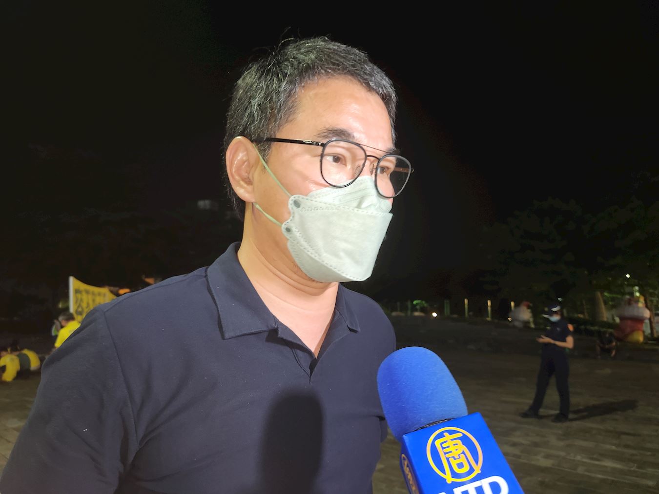 '图13:台湾立委庄竞程到台中市文心森林公园集会现场声援法轮功反迫害。'