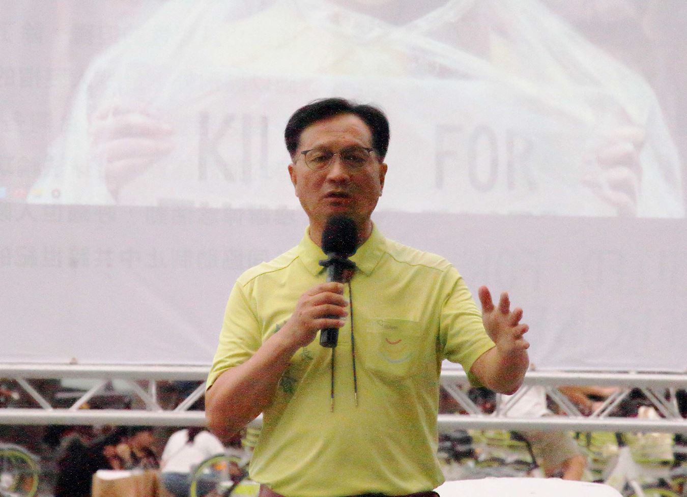 '图7:台湾立委张廖万坚到台中市文心森林公园集会现场声援法轮功反迫害。'
