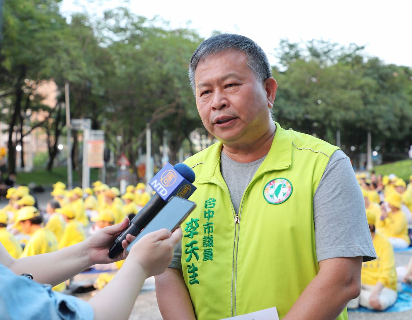 台中市议员黄守达表示,法轮功学员长久以来用各种方式、渠道向全世界,包括台湾大众传递这些重要的讯息,学员坚持不懈的精神是相当值得尊敬的。