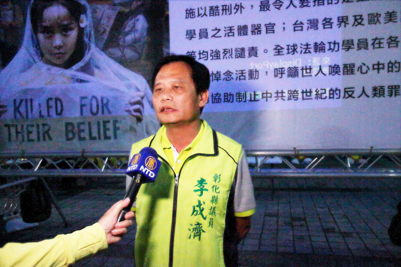 彰化县议员李成济表示,中共活摘器官的暴行是令人神共愤的!不能让这种行为再发生了。他希望透过大家的谴责、呼吁,能让中共停止这种惨无人性对待人民的方式,他呼吁大众一起来努力。