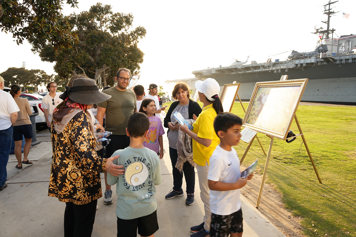 从科罗拉多州丹佛来圣地亚哥旅游的特里(Terrie)说她第一次听说法轮功,她认真地看了每一幅画并仔细阅读画的说明。“我喜欢艺术,这些艺术家们很杰出。我花时间欣赏这些画并了解每幅画背后的故事。这是一些令人伤心的故事。”她说,“因为打坐修炼而遭受迫害,这太令人悲哀。每个人都应该有信仰的权利,有自由表达自己的精神信仰。”