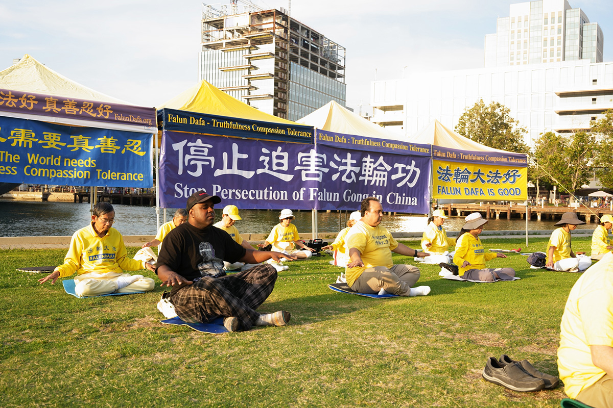 来自加州中部地区的年轻人安德鲁·阿亚拉(Andrew Ayala)看了法轮功学员的功法演示后说:“非常独特,也非常美。”他和同伴都签名支持法轮功学员反迫害。“因为我了解了在那里发生的对法轮功的迫害,很多悲剧,我希望能做点什么,我希望我的签名能帮助拯救生命。”他说。