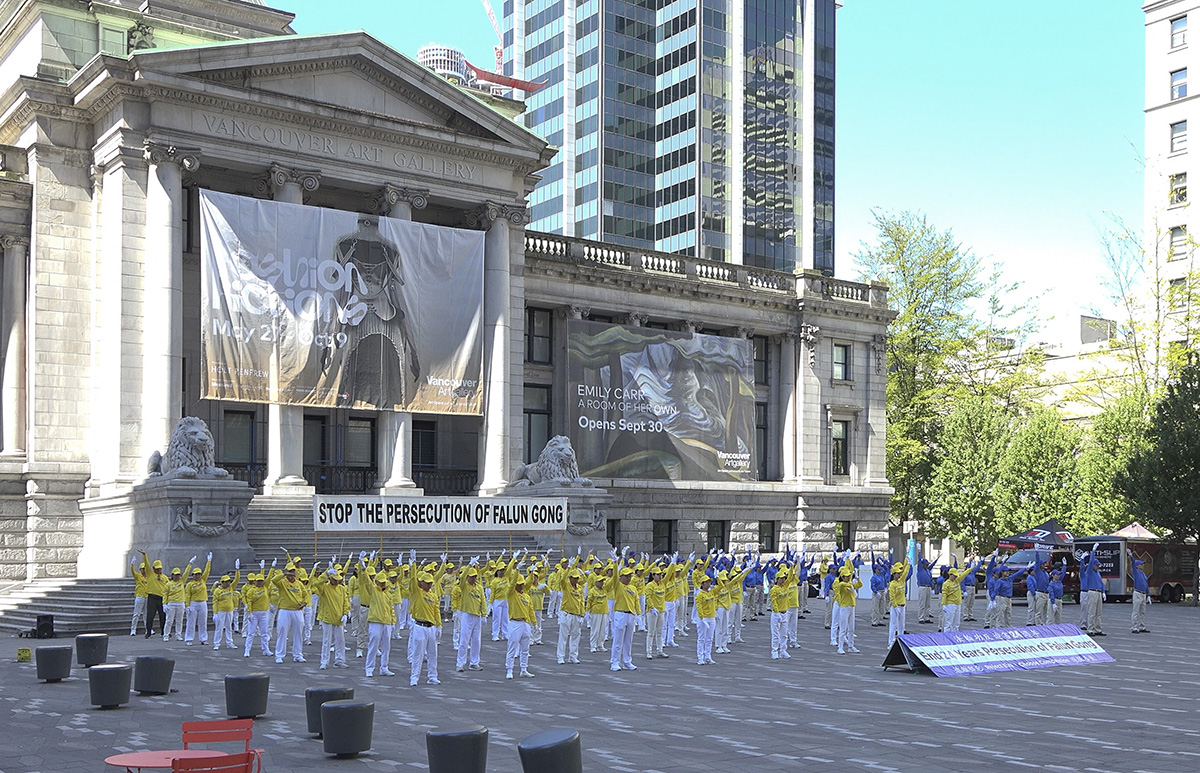 ![]() 图10:二零二三年七月十五日,部分温哥华法轮功学员在温哥华艺术馆北侧广场集体炼功。 |
