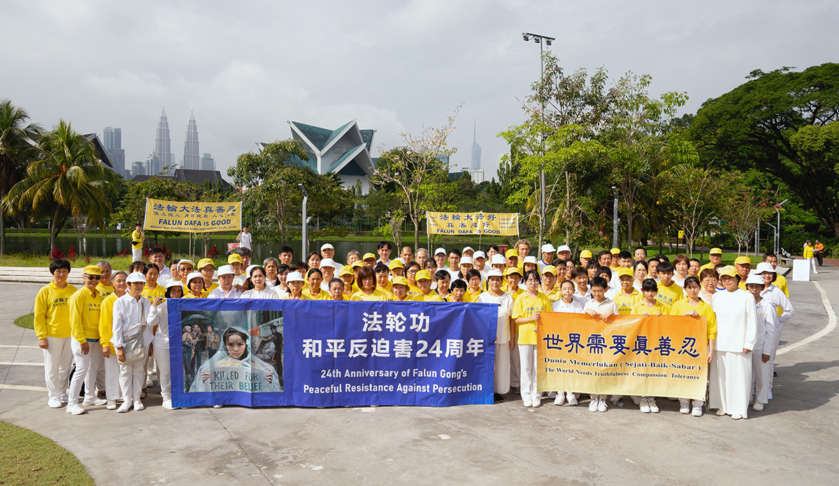 图一点2023 年七月9 日,马来西亚法部份法轮功学员在吉隆坡蒂蒂旺沙公园,举办了七·二零反迫害二十四周年活动。