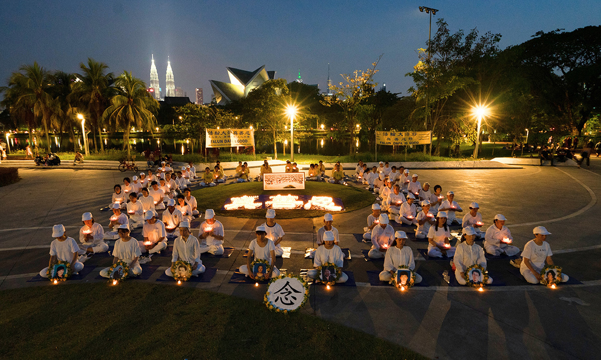 当天傍晚,法轮功学员在蒂蒂旺沙公园广场举行了烛光悼念,悼念受到中共残酷迫害无辜失去生命的中国法轮功学员。