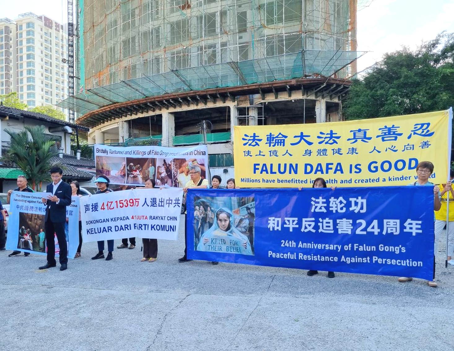 在集会上,法轮功学员代表分别以中文和马来文宣读文稿。马来西亚法轮功学员前往中领馆反迫害,风雨无阻已经持续了二十多年,向人们展示法轮功的大善大忍,唤醒正义与良知,希望有更多的民众了解真实的法轮功,早日结束中共对法轮功的迫害。
