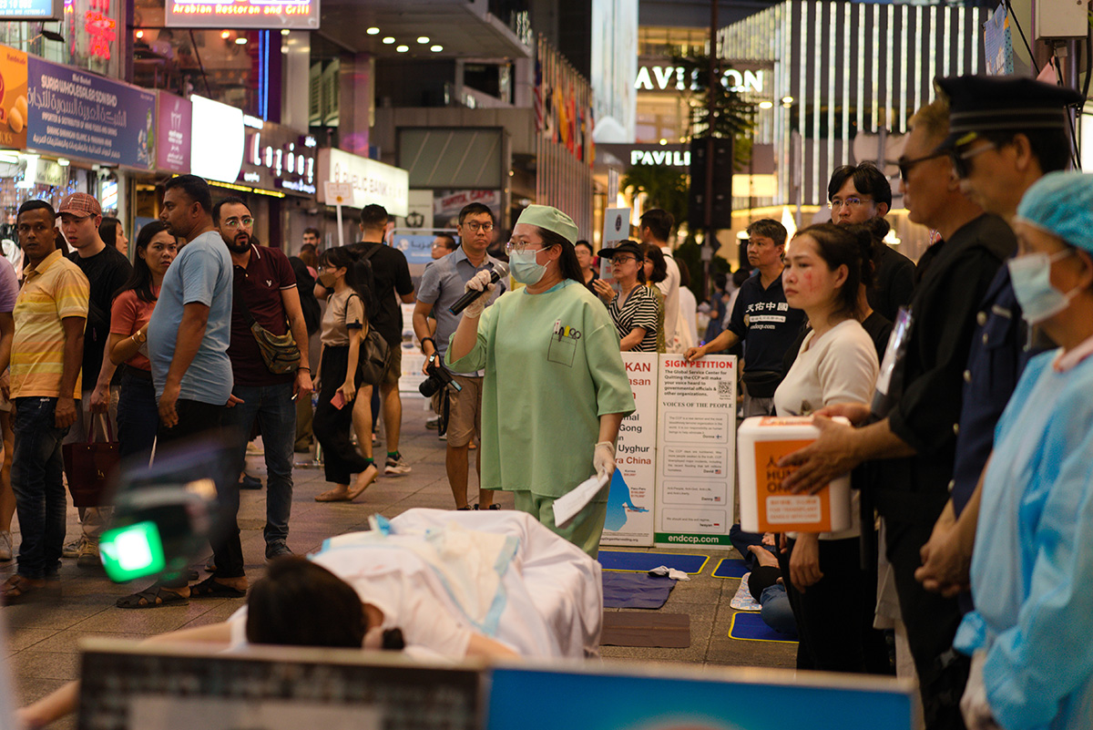 华灯初上,行人熙攘。吉隆坡的星光大道上,法轮功学员以音乐剧《高贵的灵魂在风中》掀起了震撼人心的揭露活摘器官演示活动。这场音乐剧不仅警示着邪恶势力对法轮功的迫害,让人们深刻感受到了法轮功学员所面临的极度抉择和邪恶威胁以及他们坚贞不屈的精神。