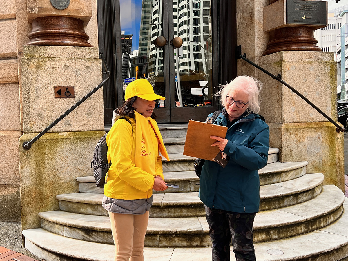 简(Jane)是一位新西兰的作家,因为她的儿子在中国乌鲁木齐生活了十年,亲眼见证了中共迫害维吾尔族人的残暴,他非常厌恶中共,所以简也很清楚中共的真实面目。在威灵顿,她经常见到法轮功学员在商业中心弘法,所以了解了不少真相。