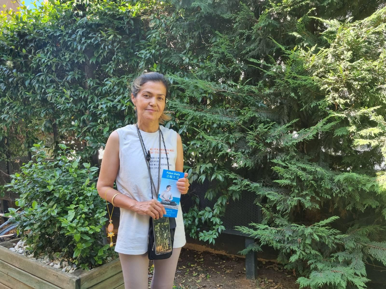 迪尔巴·加涅瓦(Dilbar Ganiyeva)是一名治疗师和美容师,她说:“我接受过很多培训,我是一名治疗师。在炼功的过程中,我感受到了不一样的世界。我真的需要这种能量。来的时候我身体很疲惫,现在感觉好多了。我好高兴。我会在余生中继续修炼法轮功。非常感谢!很高兴你们来到这里,很高兴遇见你们!”