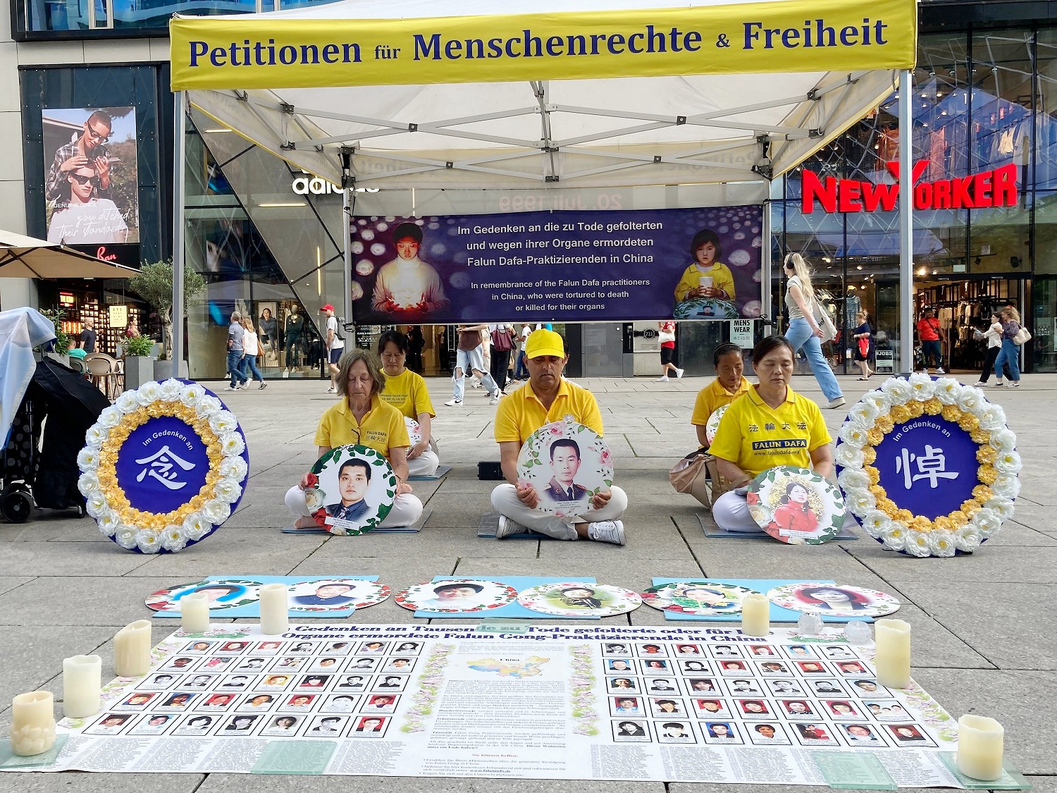 在杜塞尔多夫和慕尼黑的中共领馆前,法轮功学员通过扬声器宣读了一封劝善信,并把这封信投到领馆的信箱中。信中写道:“二十四年前,当时的中共党魁江泽民利用中共对法轮功发动了一场打压真、善、忍的迫害!他下达了‘名誉上搞臭,经济上搞垮,肉体上消灭’的灭绝政策,至今仍在给中国数百万法轮大法修炼者及其家人带来无尽的痛苦。”